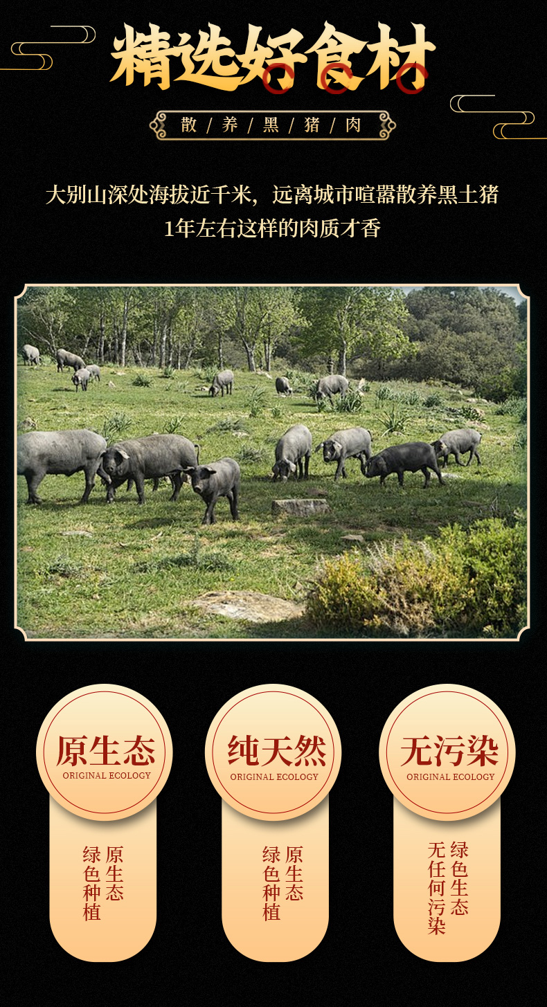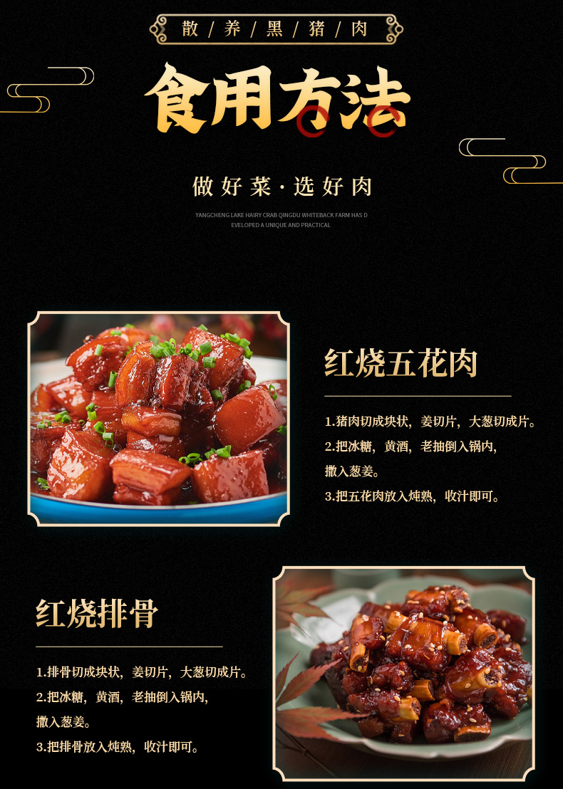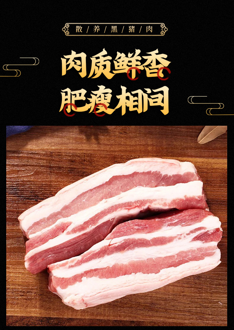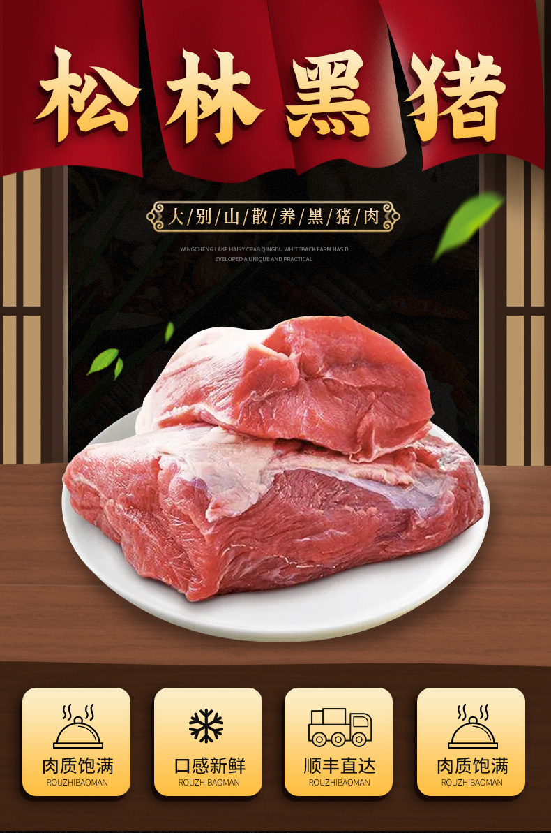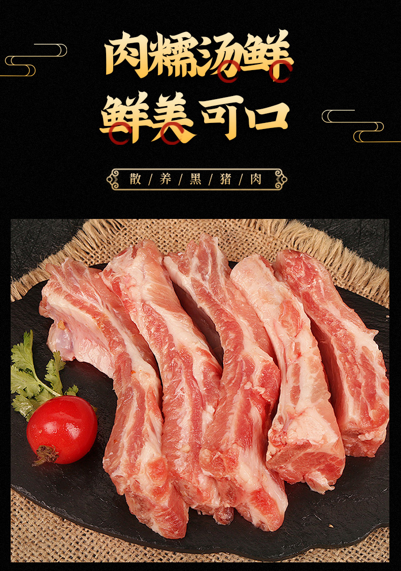 黑猪瘦肉400g/1袋 黑猪梅花肉400g/1袋 黑猪肉块400g/1袋 黑猪筒骨500g/1袋 黑猪小排400g/1袋 黑猪汤骨500g/1袋