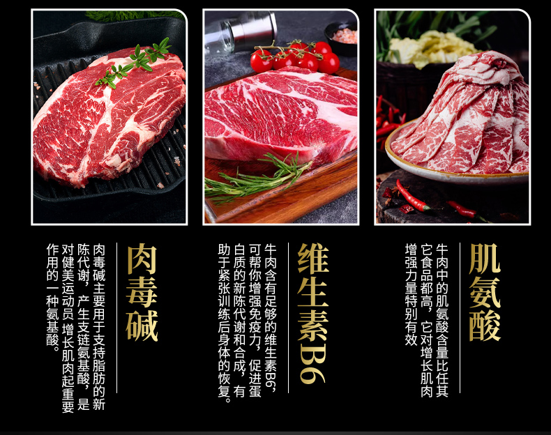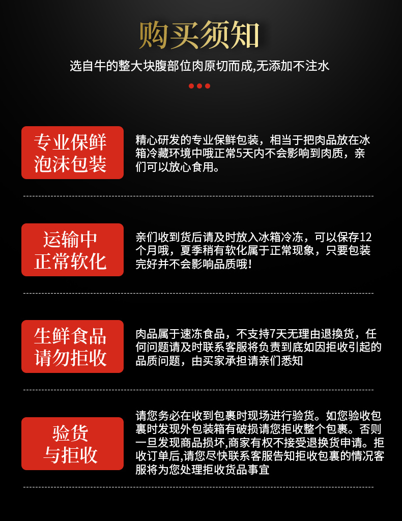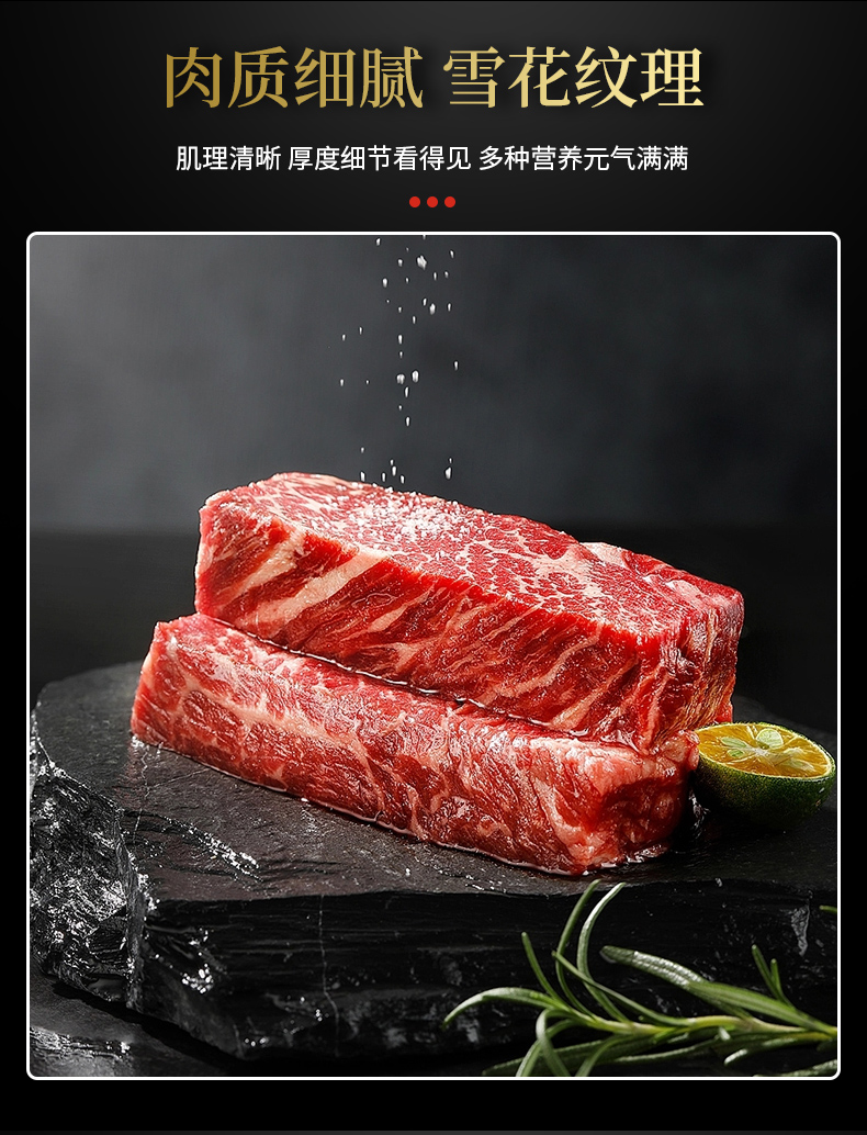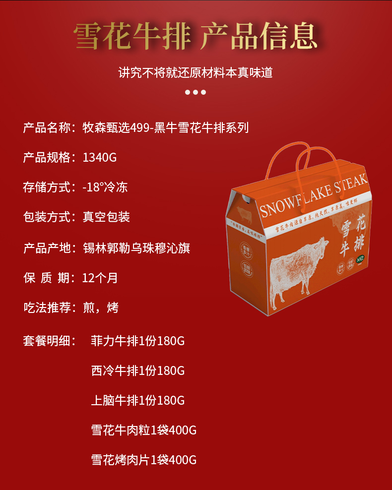 菲力牛排180g/1份 西冷牛排180g/1份 上脑牛排180g/1份 雪花牛肉粒400g/1袋 雪花烤肉片400g/1份