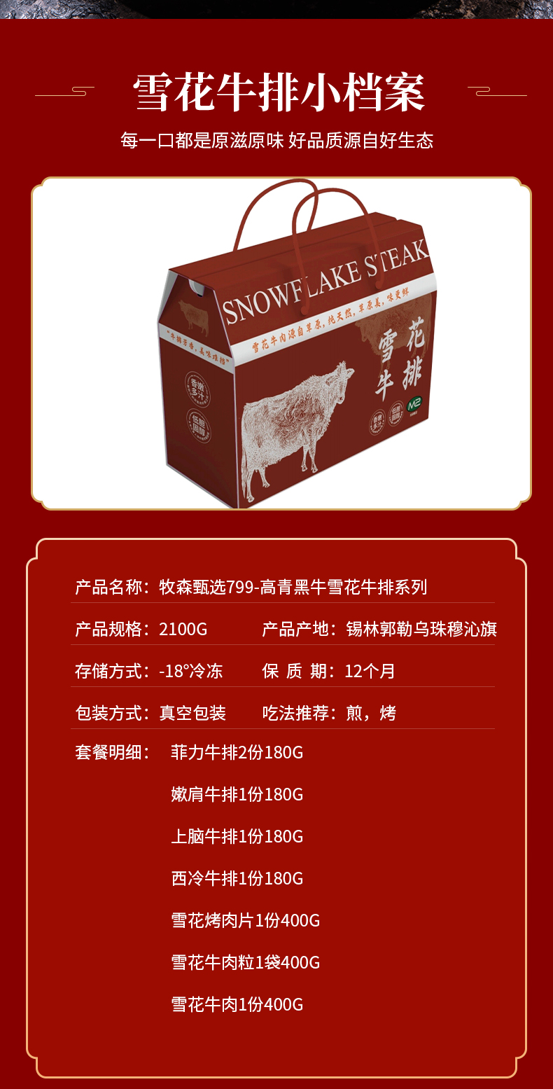 牧森甄选-999高青黑牛雪花牛排礼盒