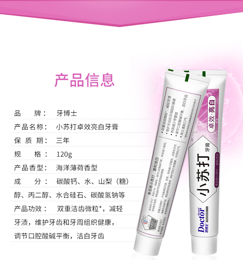 牙博士 小苏打牙膏120g 卓效亮白1支装
