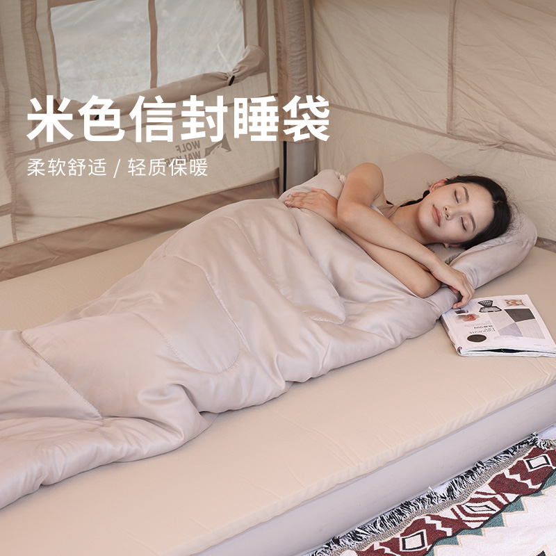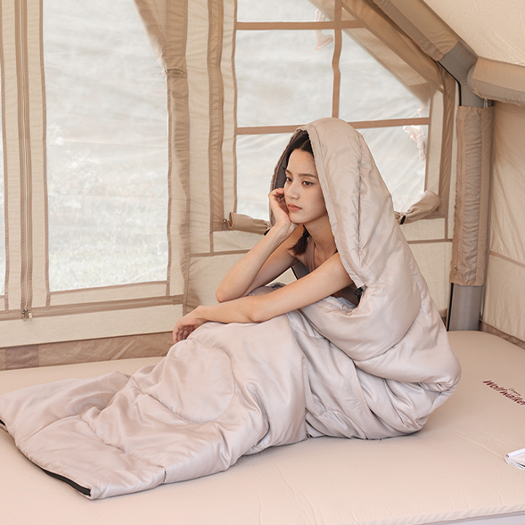 信封式带帽睡袋 填充饱满中空棉, 云朵般轻盈触感 露营悦享轻盈睡眠