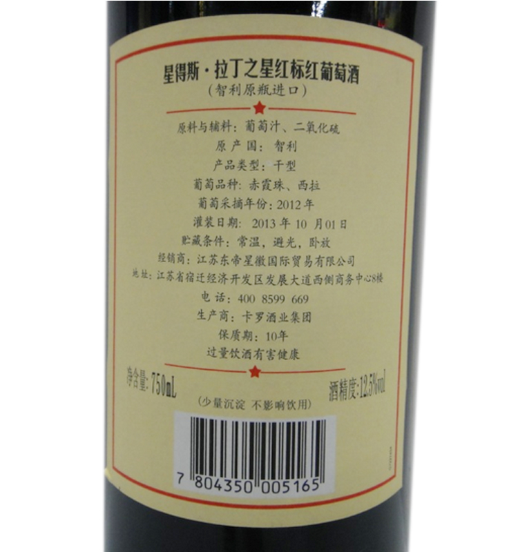 星得斯·拉丁之星 红标 智利原装进口红酒 葡萄酒