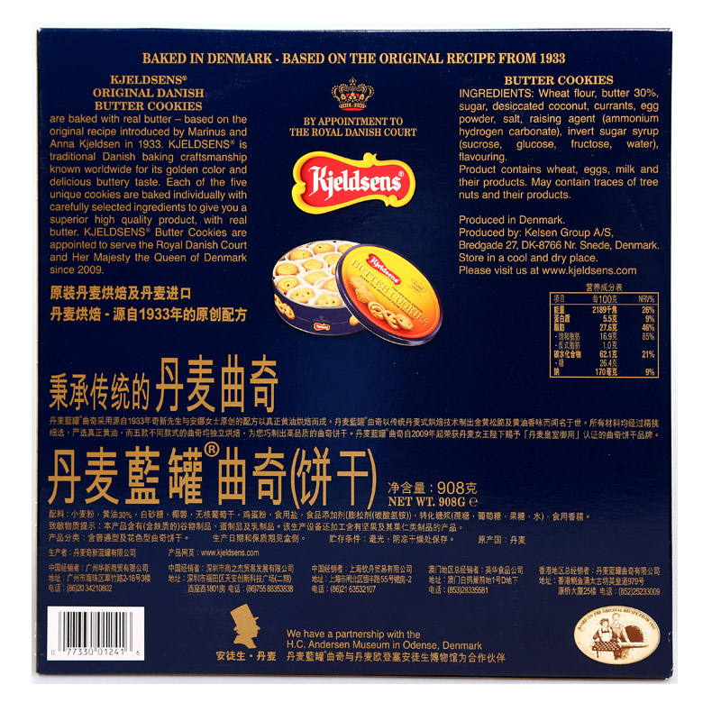 蓝罐 丹麦蓝罐 曲奇饼干908g/盒 丹麦进口食品 曲奇饼干休闲零食 送礼礼品