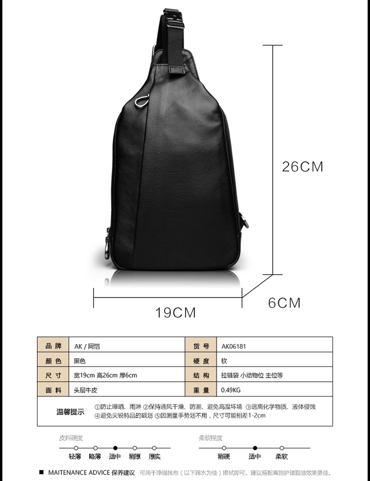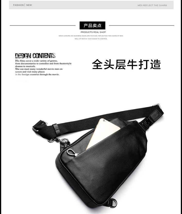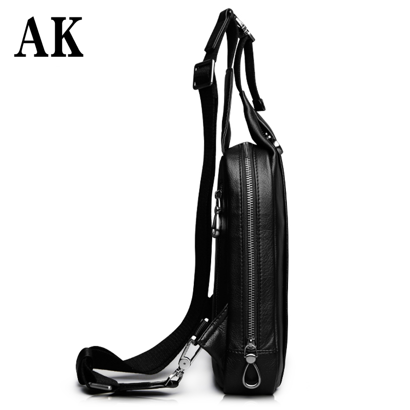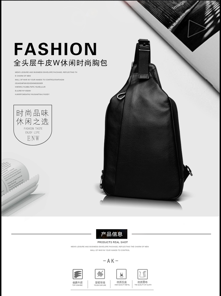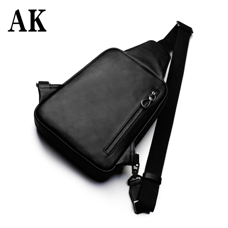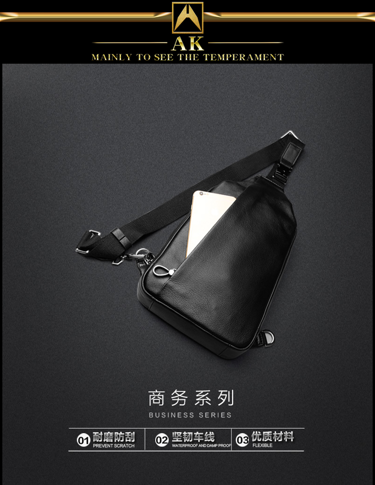 AK男包 胸包男士真皮腰包韩版休闲潮流头层牛皮单肩斜挎包