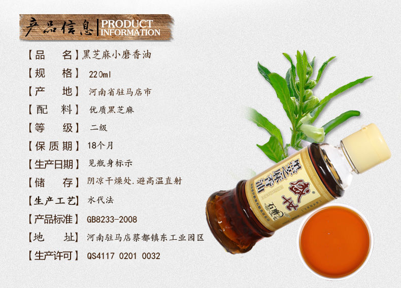 盛世黑芝麻石磨小磨香油纯芝麻油食用植物油礼盒220ml*6