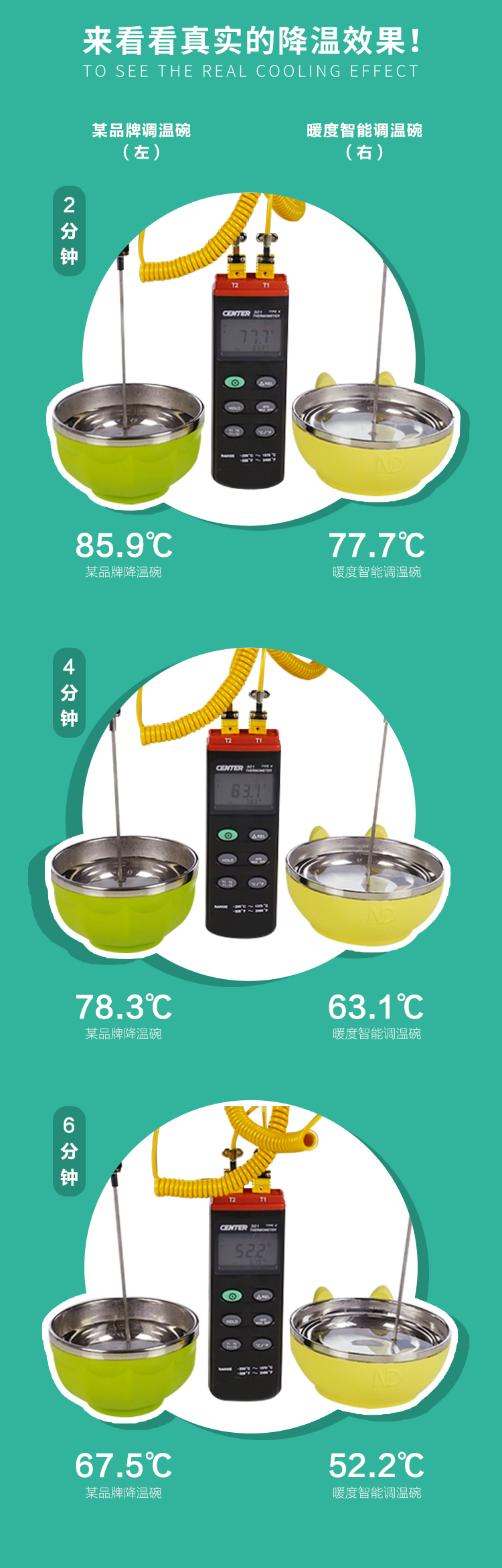 4、添加食品级特殊调温材料,安全降温,无需搅拌也能让滚烫食物快速降温并长时间保持最佳口感温度,让食物更为美味