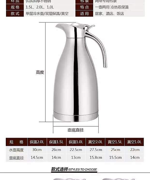 家用保温壶开水壶热水瓶保温瓶暖壶杯户外304不锈钢大容量2L