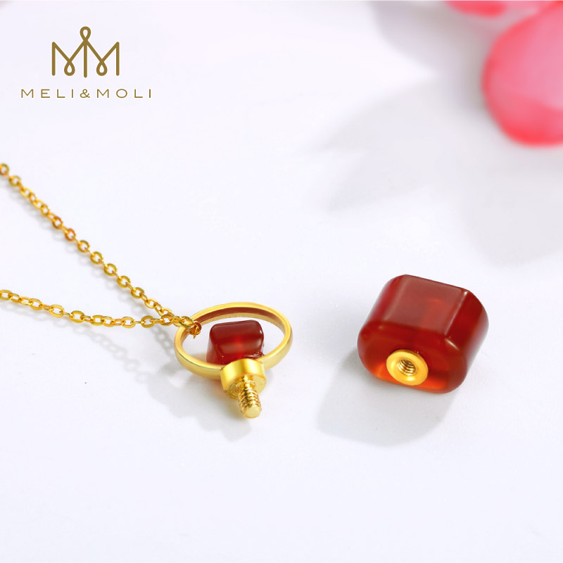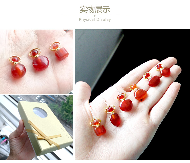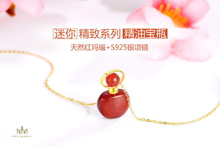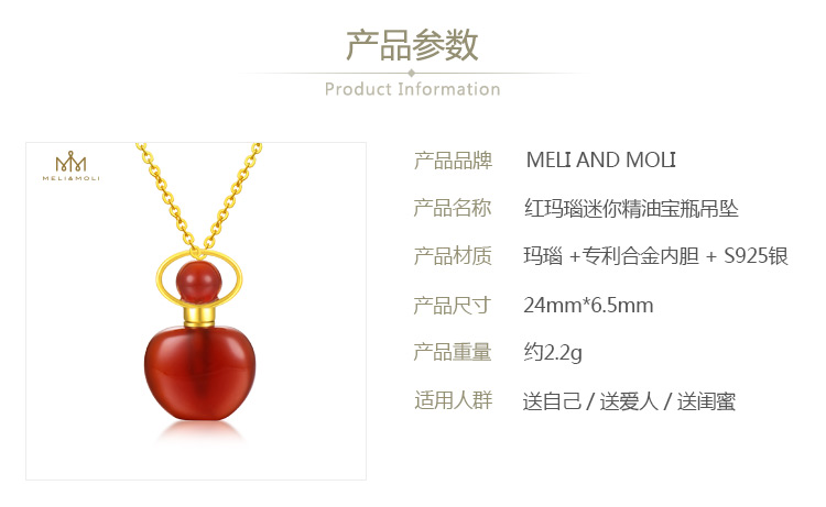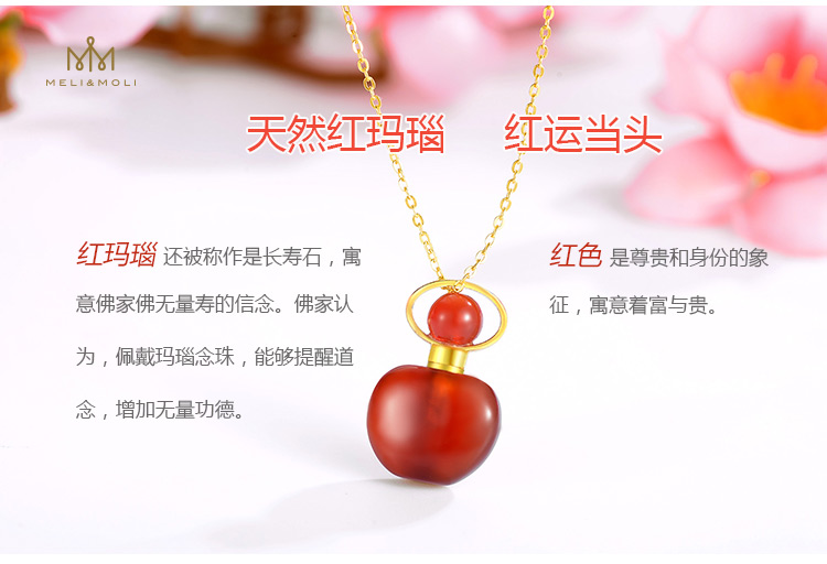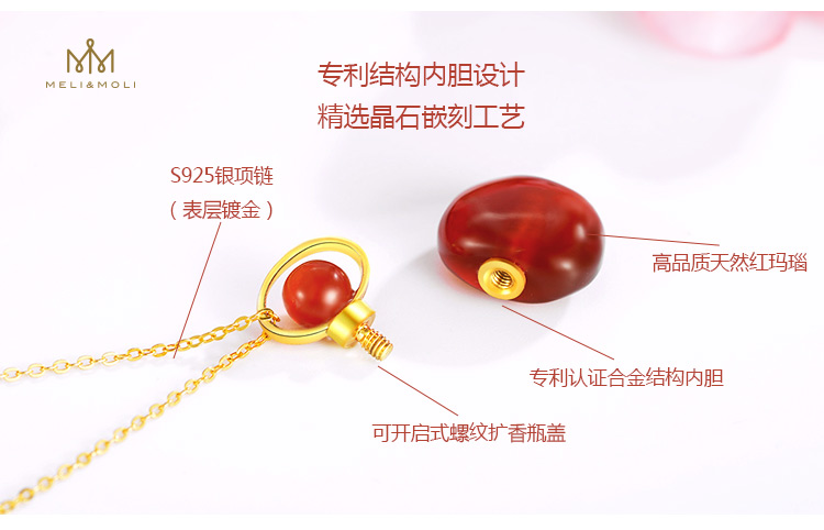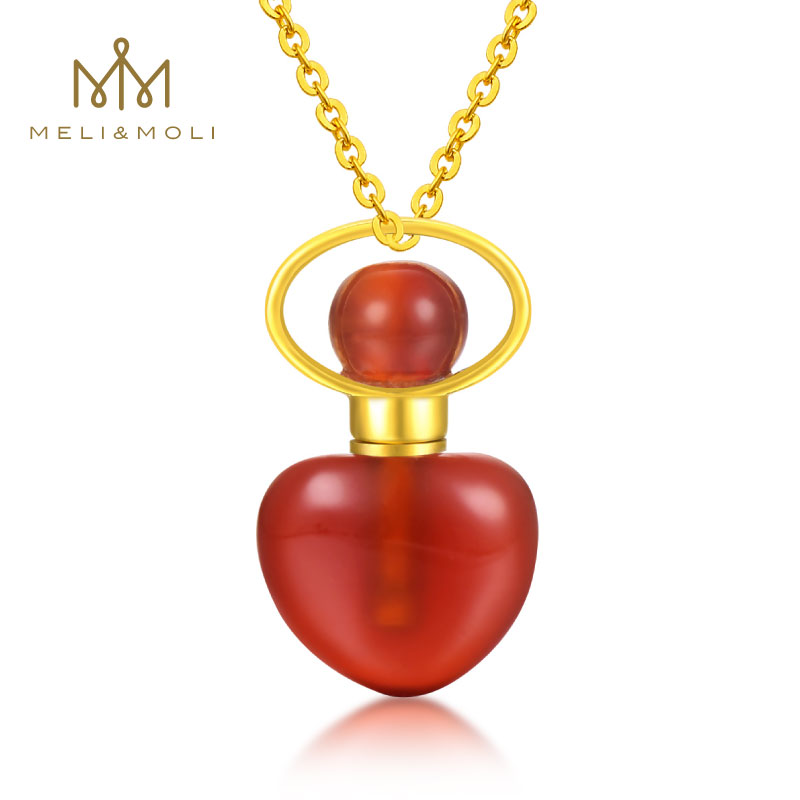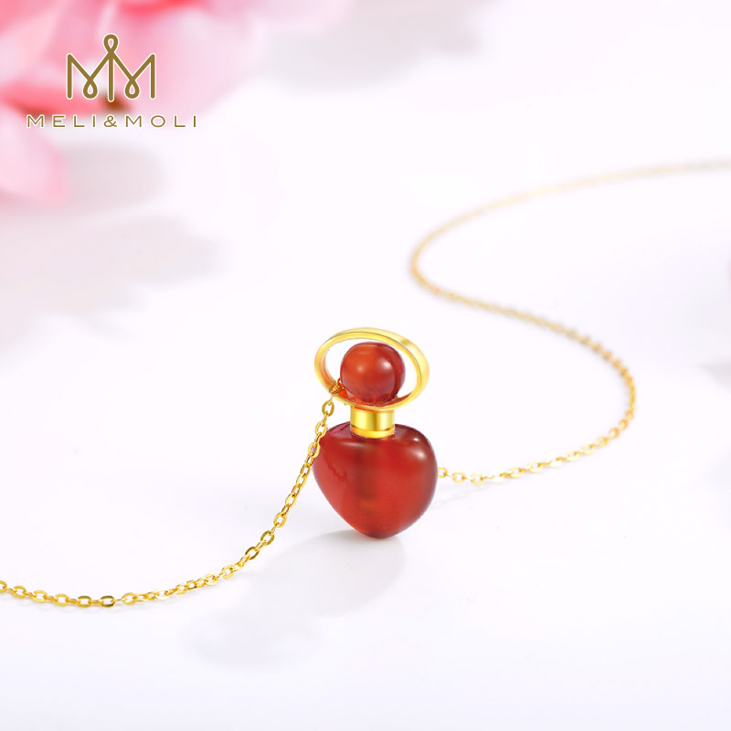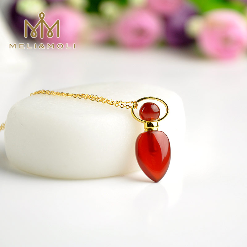 天然红玛瑙宝瓶吊坠 心能量迷你苹果香水精油芳疗瓶子配925银项链
