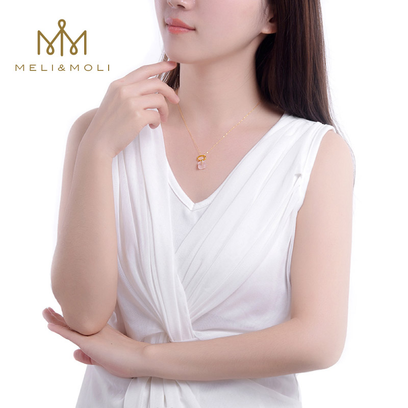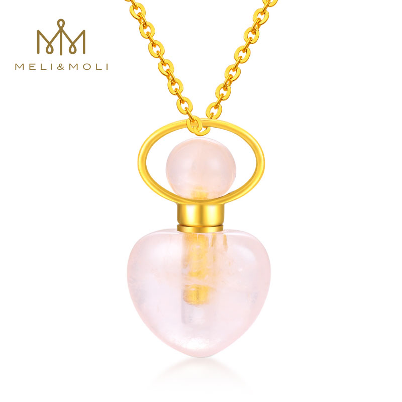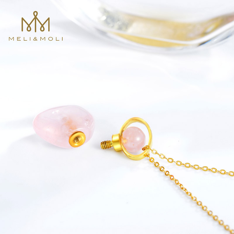 MELI MOLI 粉水晶精油瓶吊坠招桃花 天然香水瓶S925银项链送女友