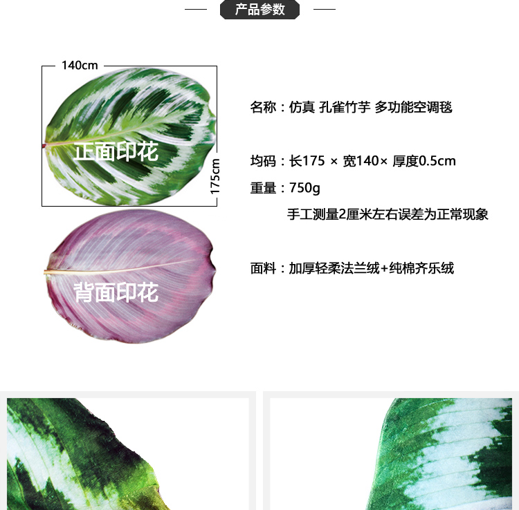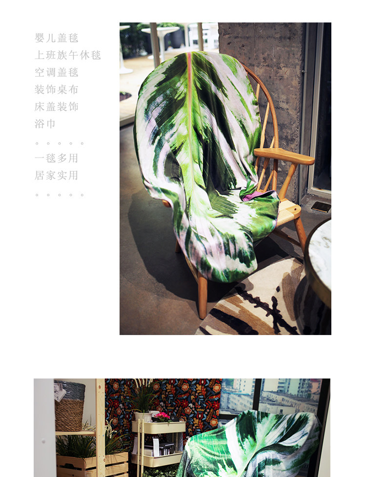 趋然创意毛毯 仿真树叶办公室空调盖毯(孔雀竹芋)
