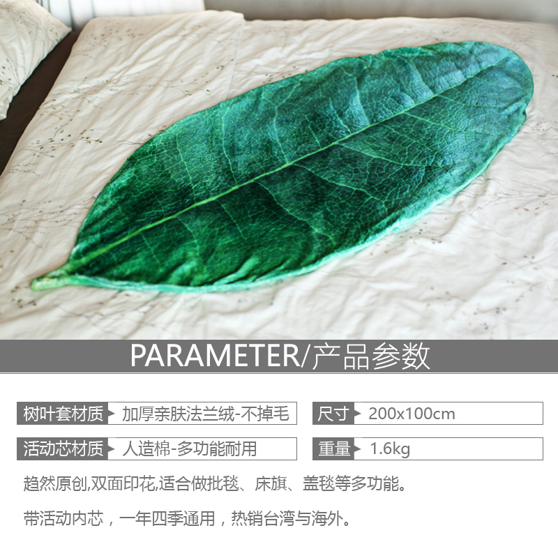 趋然(杨梅叶) 新鲜双面毛毯法兰绒空调毯树叶春秋被子午休单人小盖毯