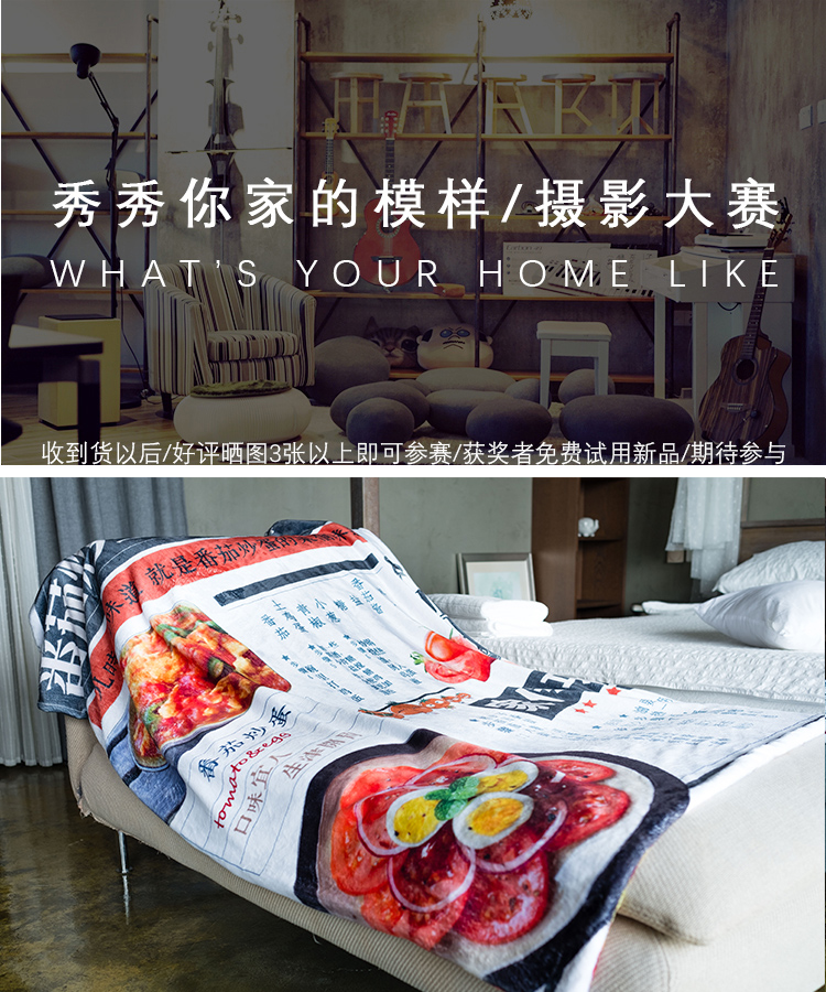 趋然(番茄炒蛋)原创仿真海报毛毯 潮流法兰绒空调毯旅行沙发午睡毛毯休闲毯