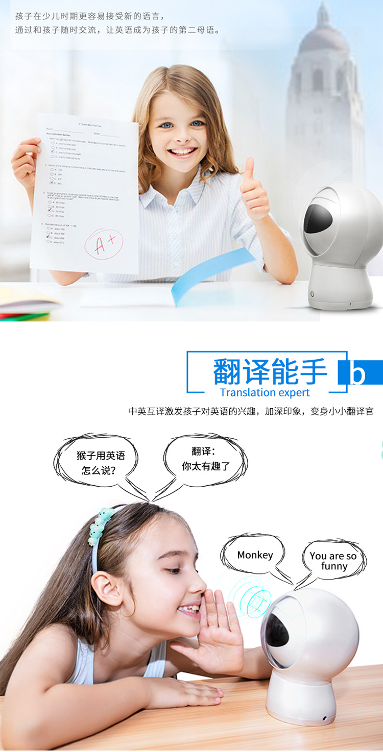 智能双语助手,双语早教机器人,给孩子瞬间的惊喜