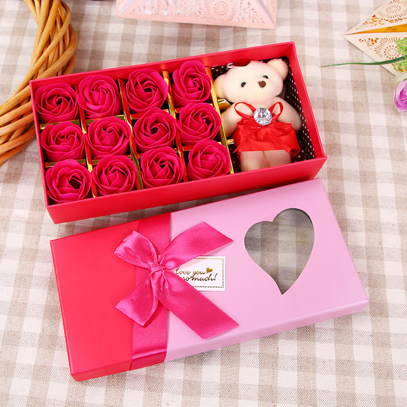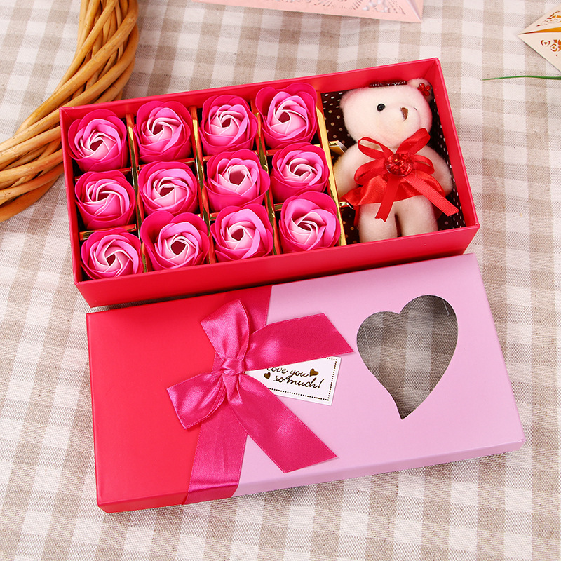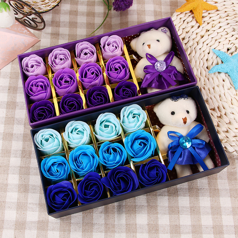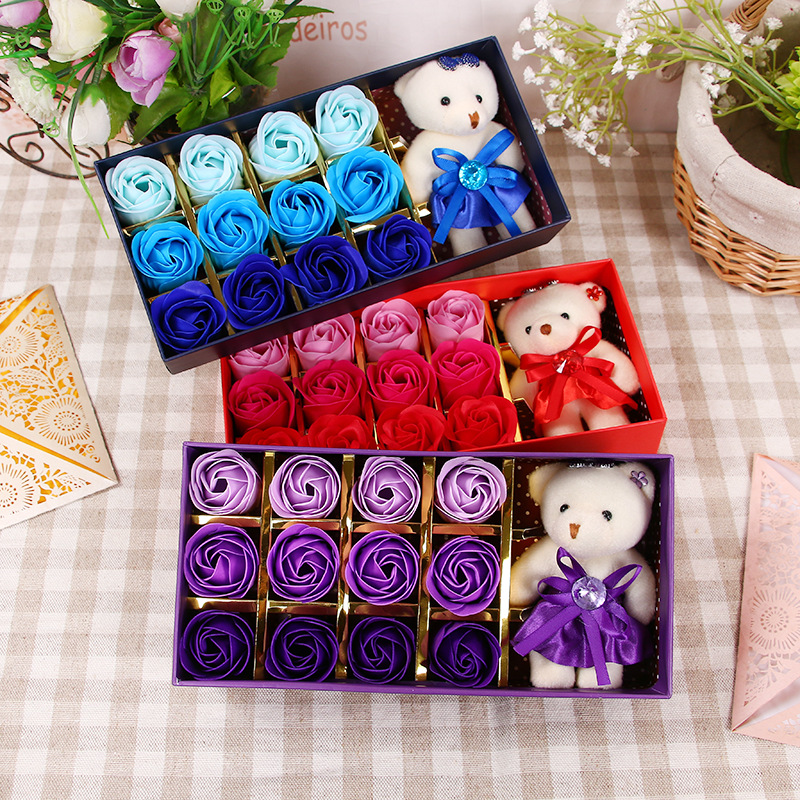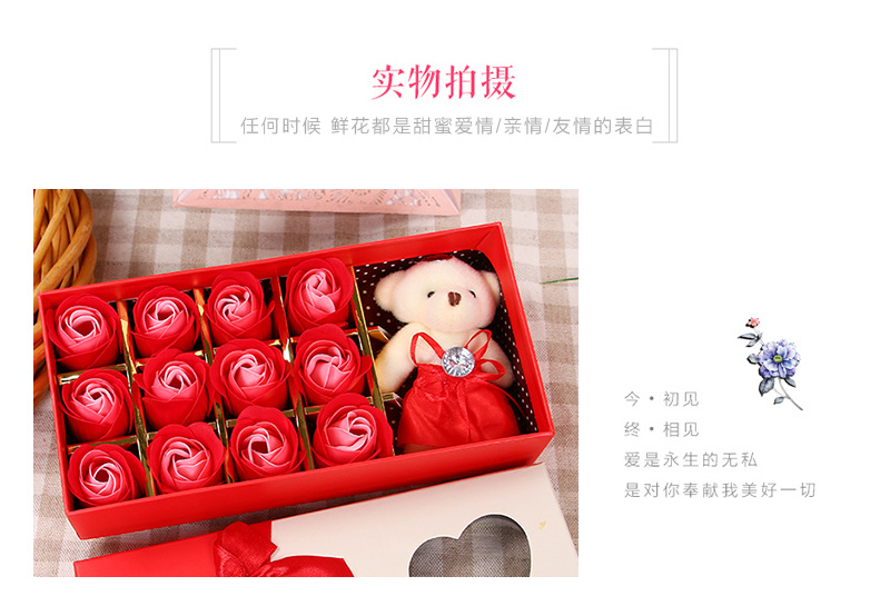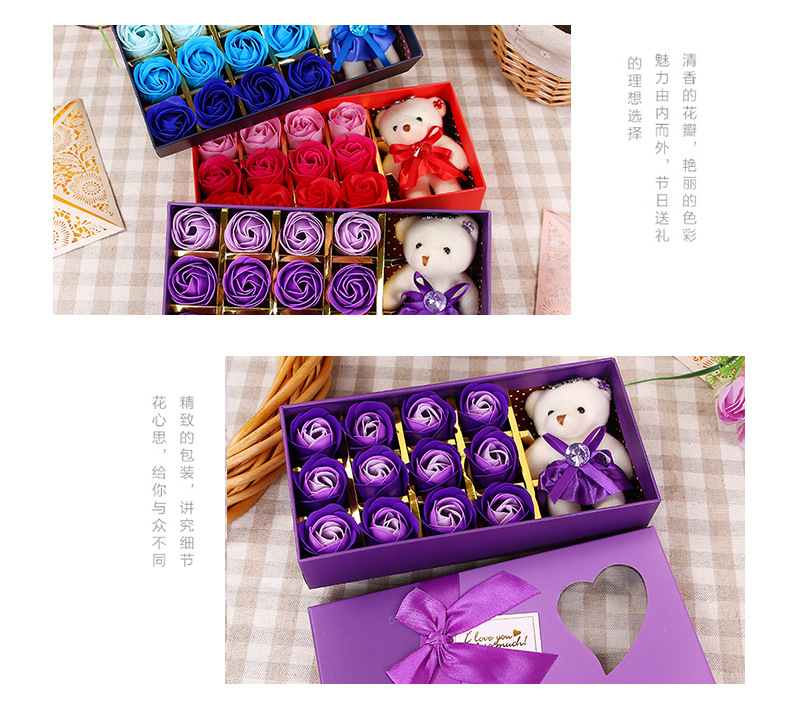 肥皂花玫瑰花礼盒小熊玫瑰香皂花盒生日礼物七夕情人节花礼品批发