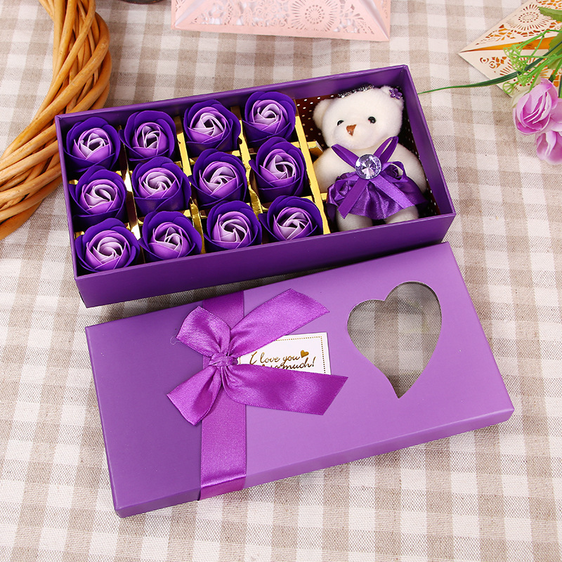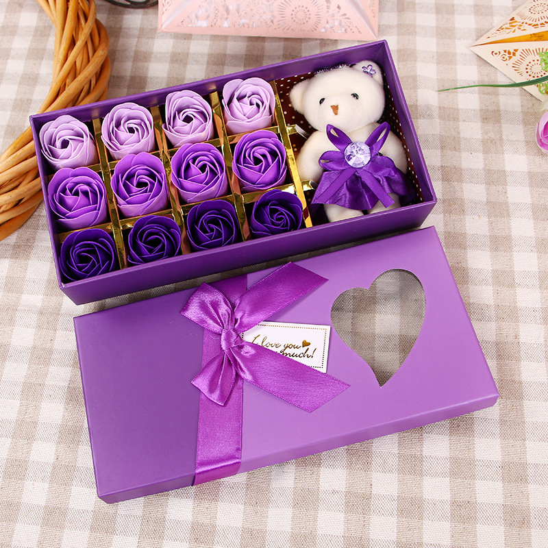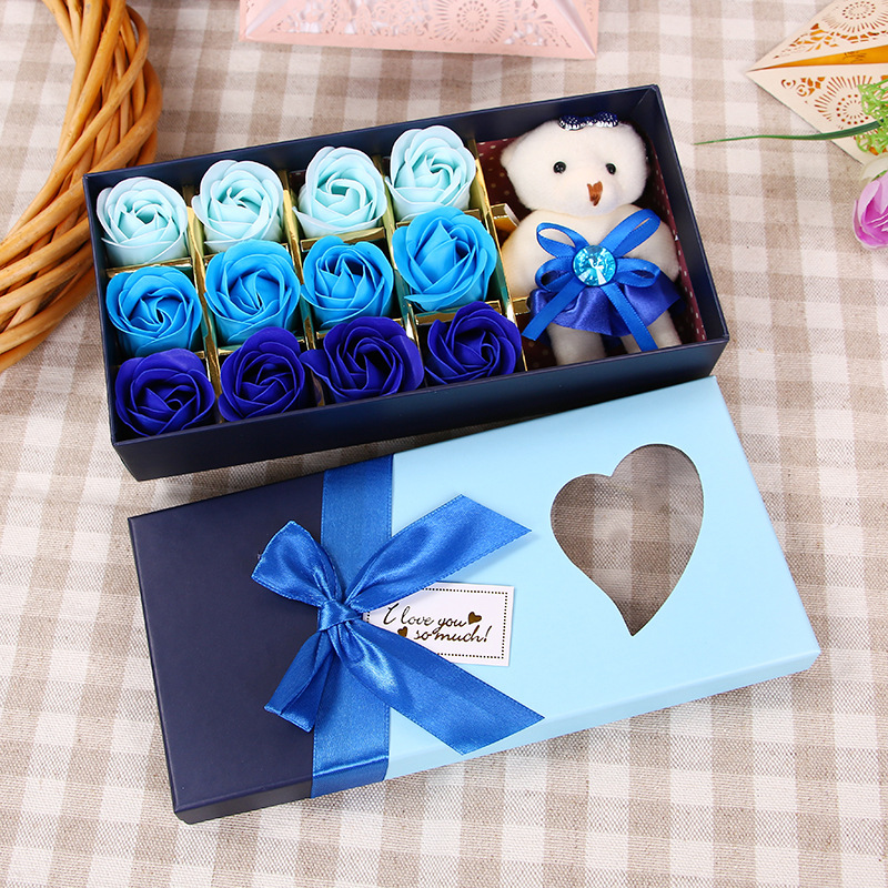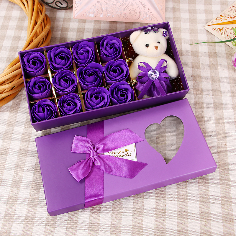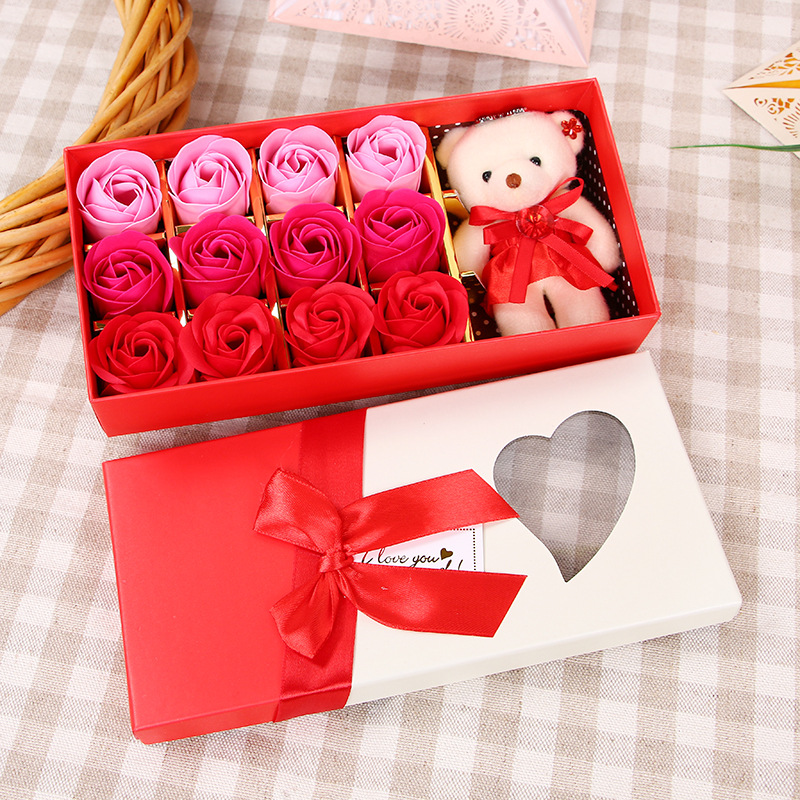 肥皂花玫瑰花礼盒小熊玫瑰香皂花盒生日礼物七夕情人节花礼品批发