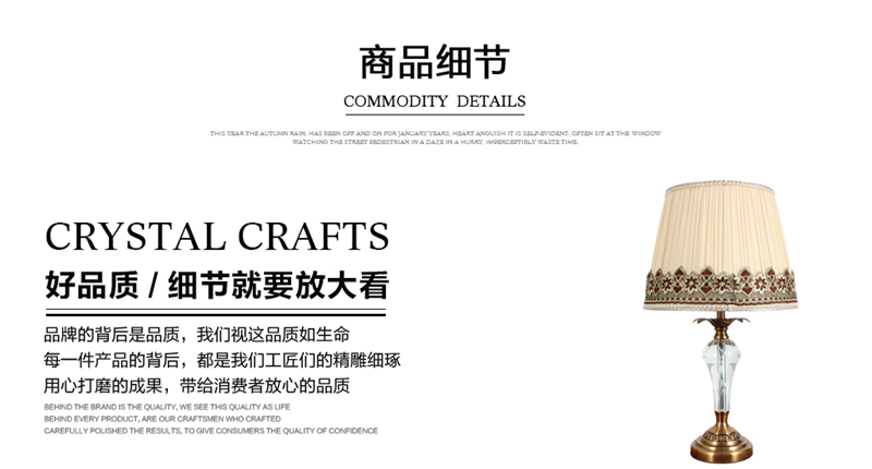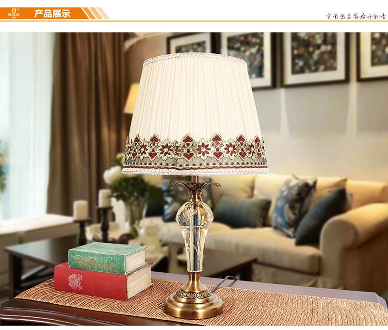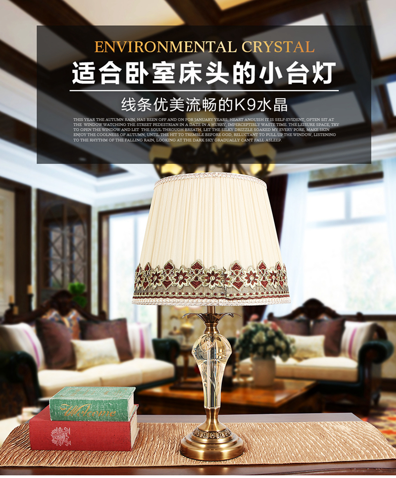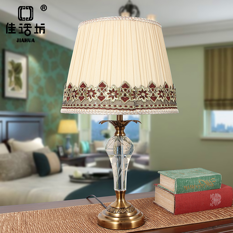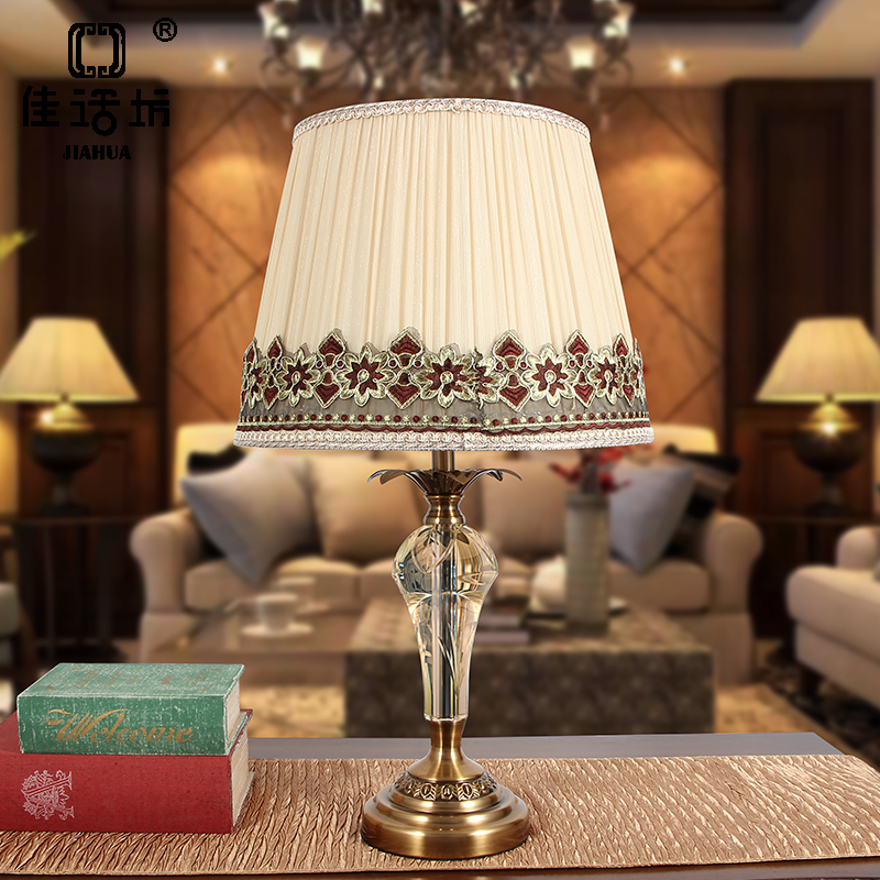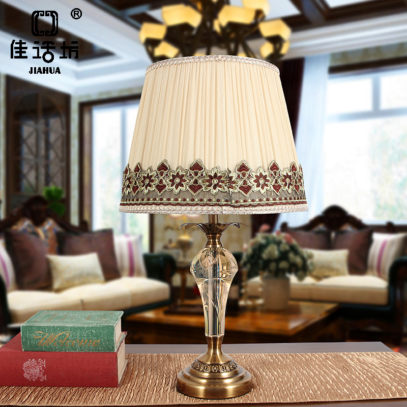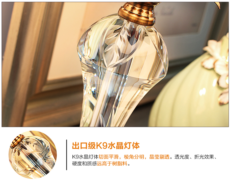 佳话坊欧式奢华现代简约客厅K9水晶台灯 卧室床头台灯高档五金灯具柜灯