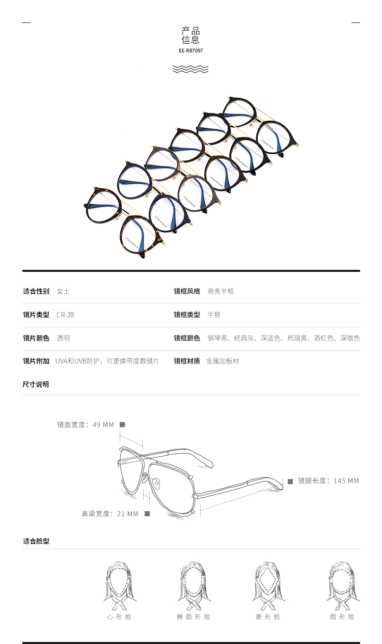 颜色分类: 钢琴黑 经典灰 玳瑁黄 深咖色 酒红色 深蓝色