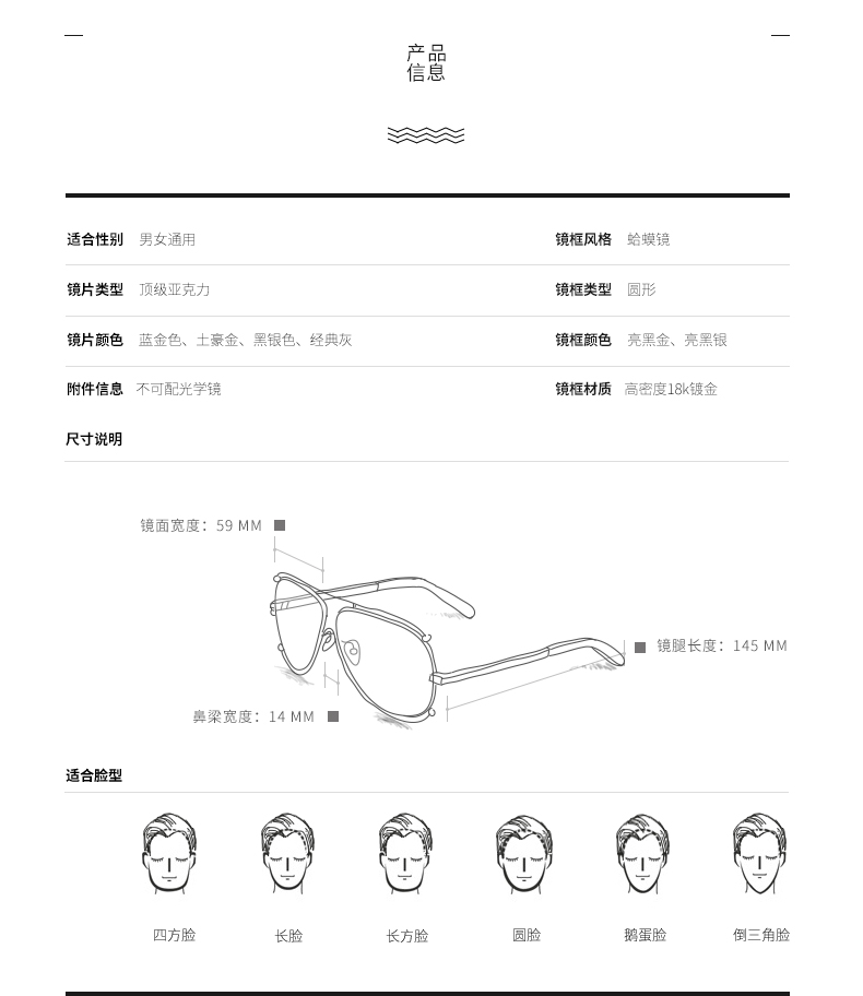 适合脸型: 圆脸 长脸 方脸 椭圆形脸