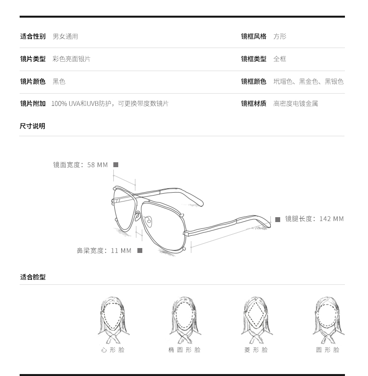 适合脸型: 圆脸 长脸 方脸 椭圆形脸