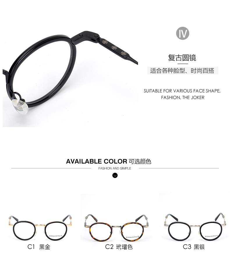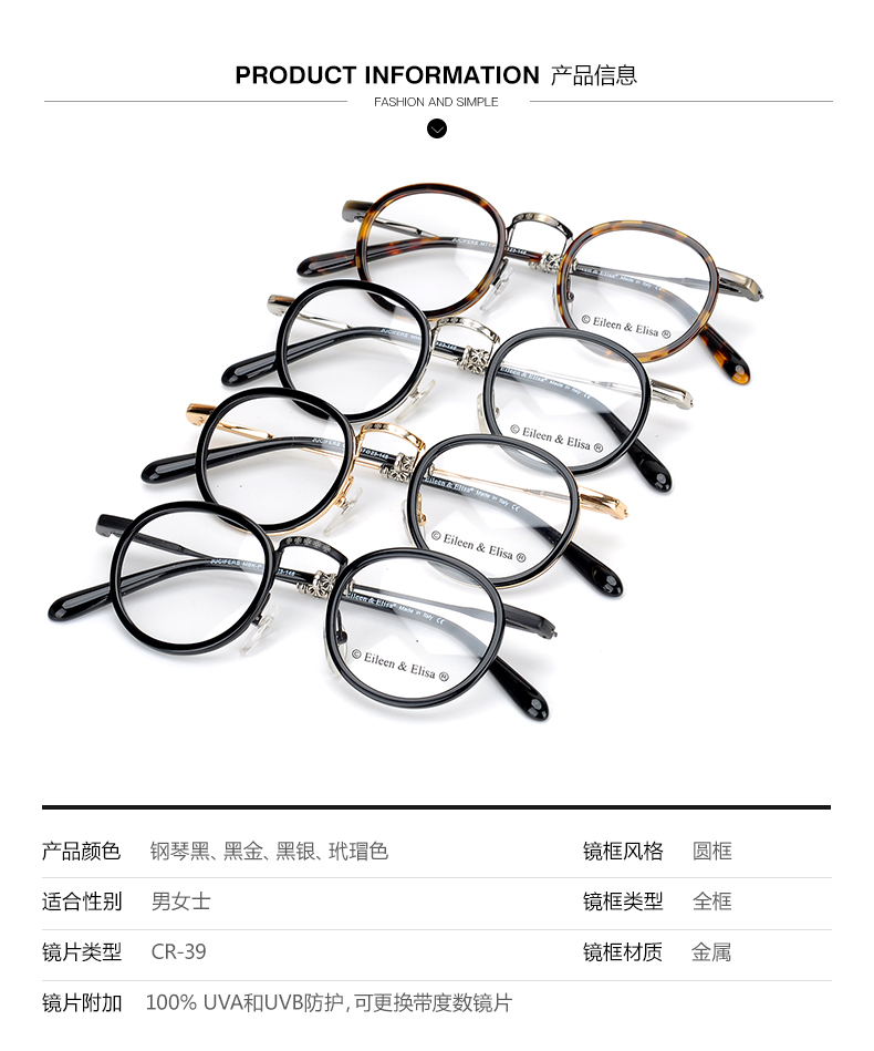 复古圆近视镜框女金属眼镜架超轻时尚平光镜男显瘦显脸小