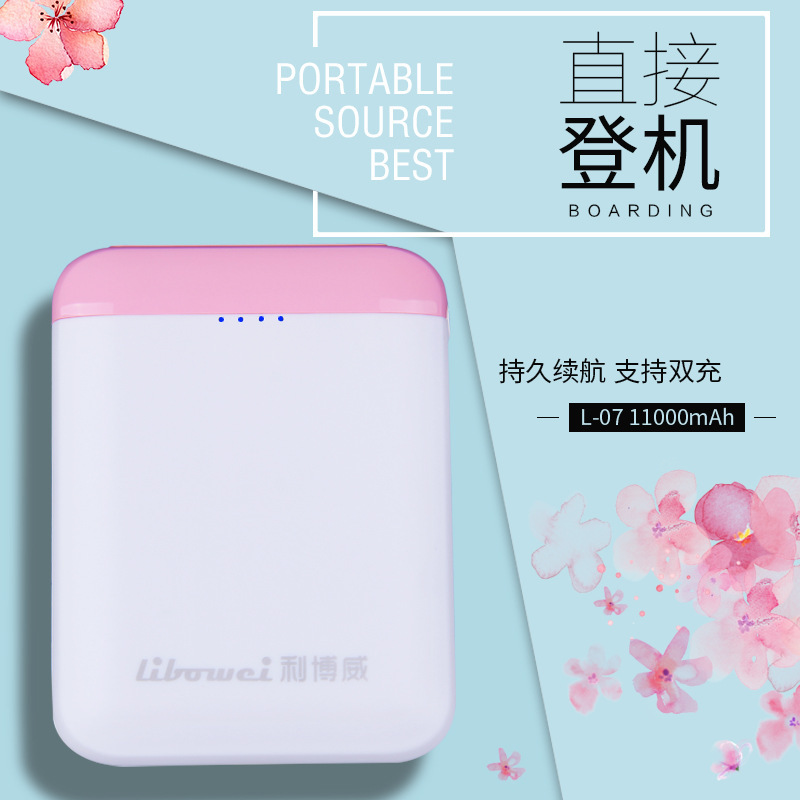 利博威L-07手机充电宝11000mAh毫安 小巧粉色移动电源工厂直供