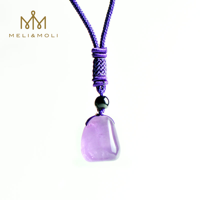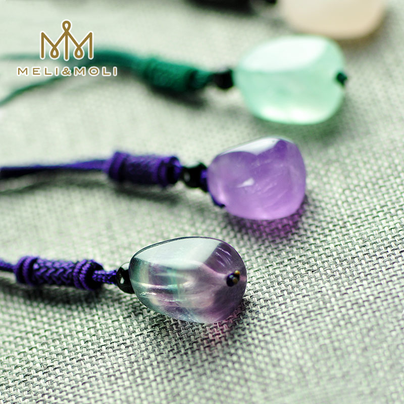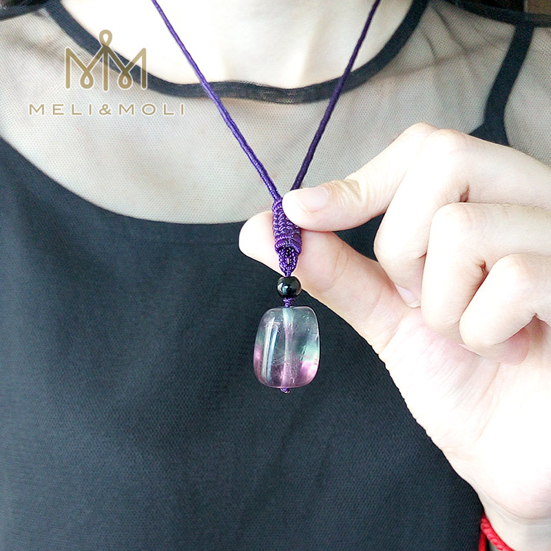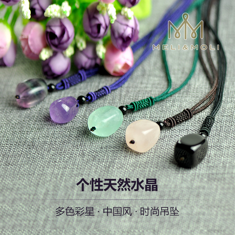 手工编绳彩晶石吊坠天然彩萤石随型个性紫水晶黑曜石多色璞石挂件