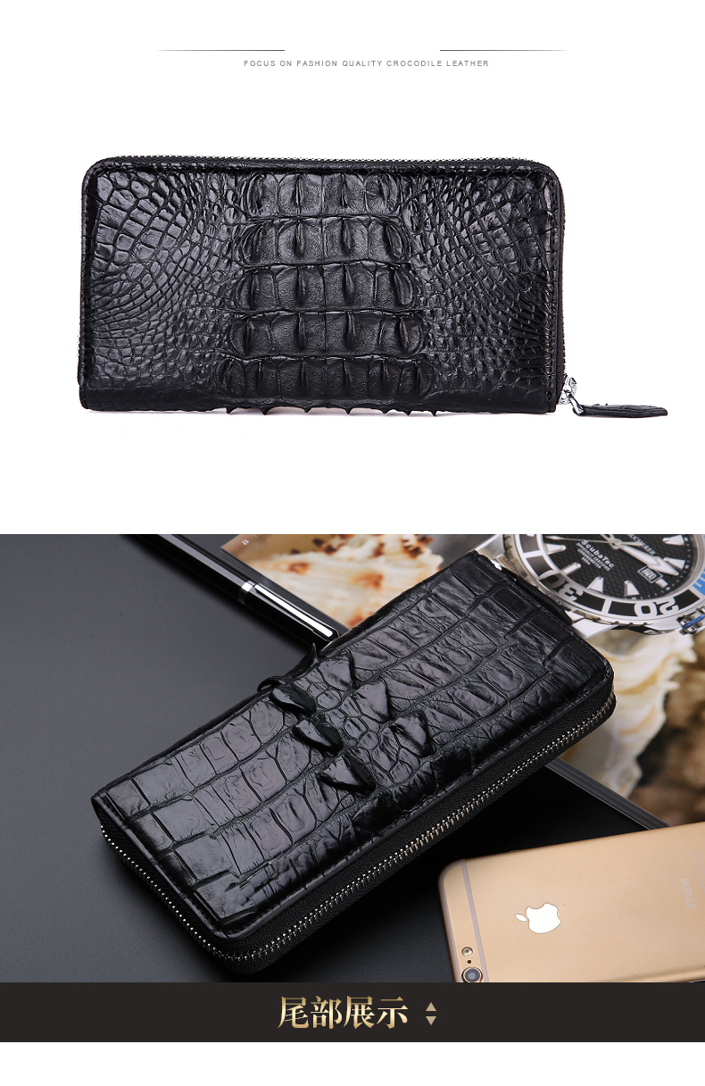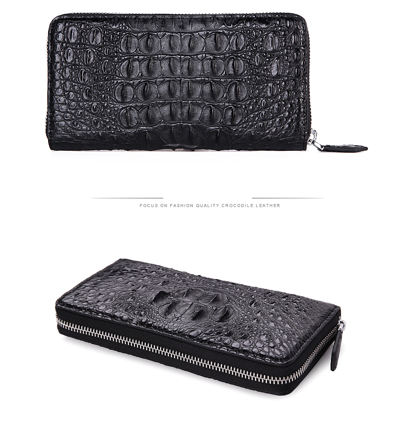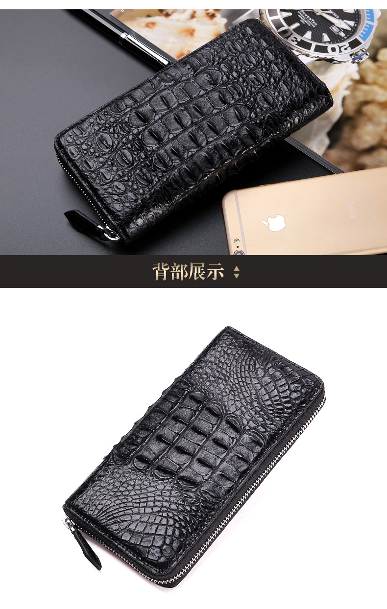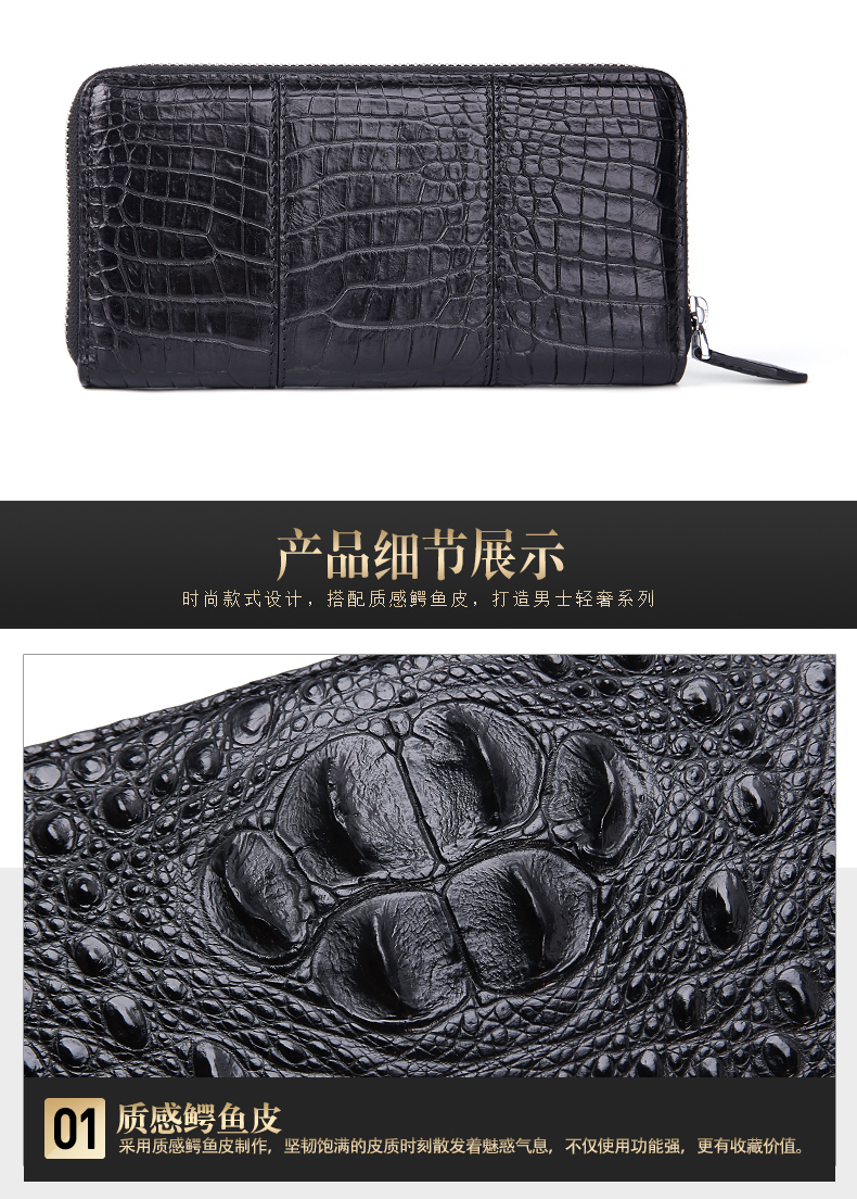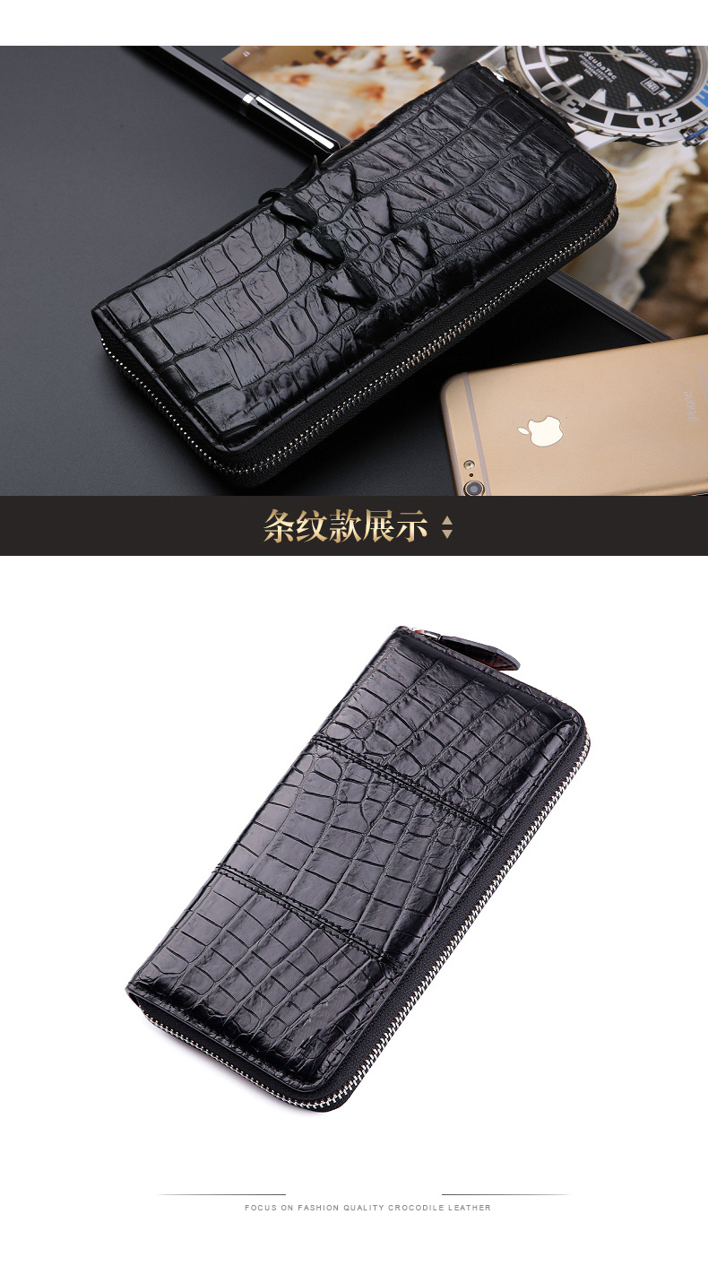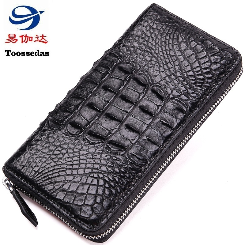 易伽达男士钱包鳄鱼皮真皮长款经典手拿包多卡位休闲拉链钱包钱夹