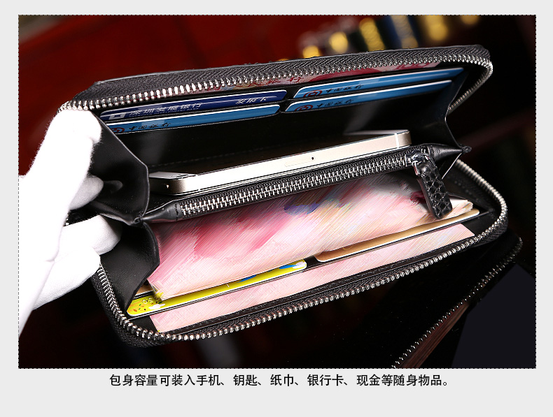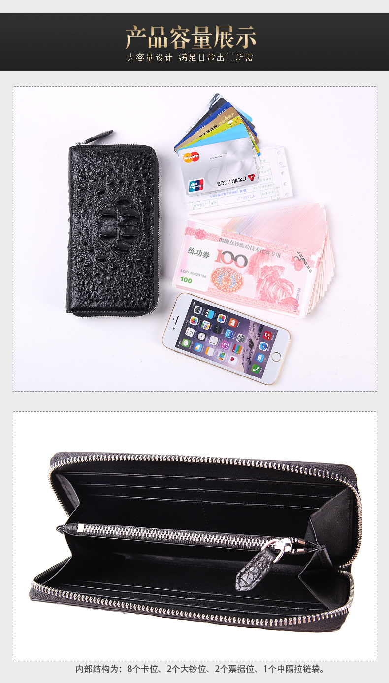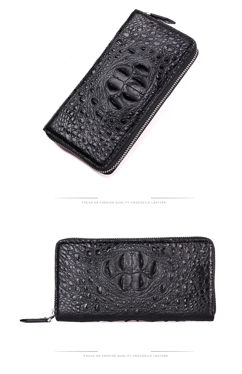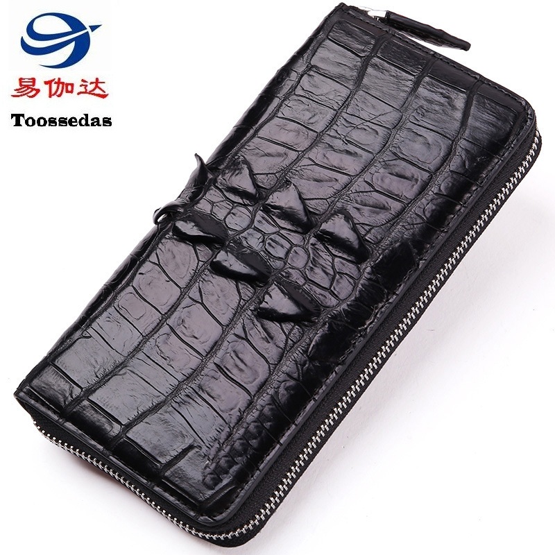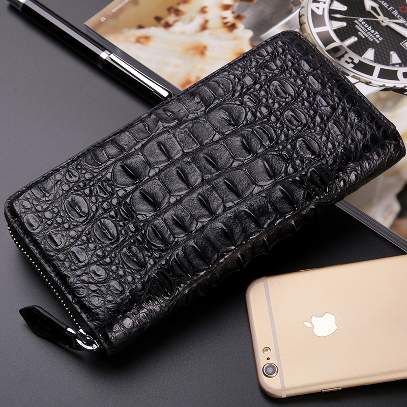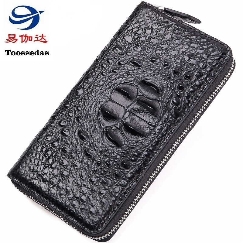 易伽达男士钱包鳄鱼皮真皮长款经典手拿包多卡位休闲拉链钱包钱夹