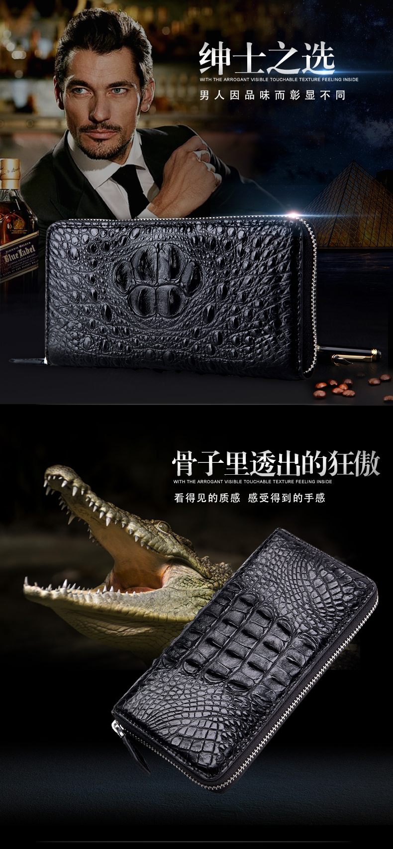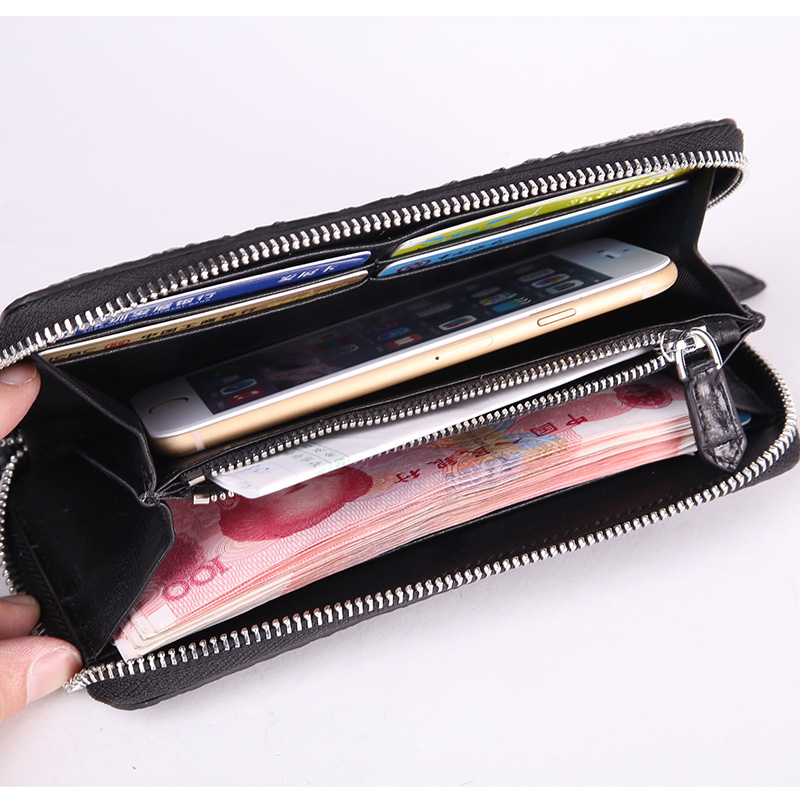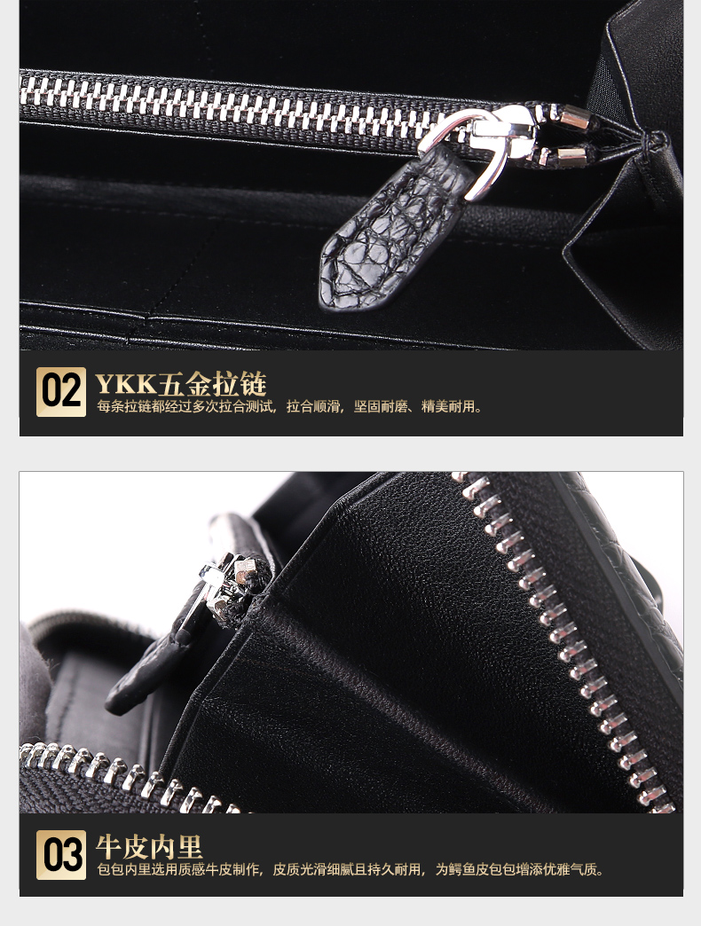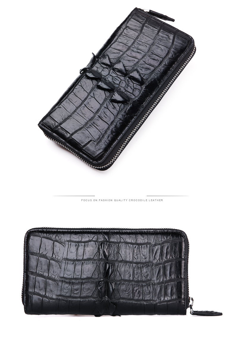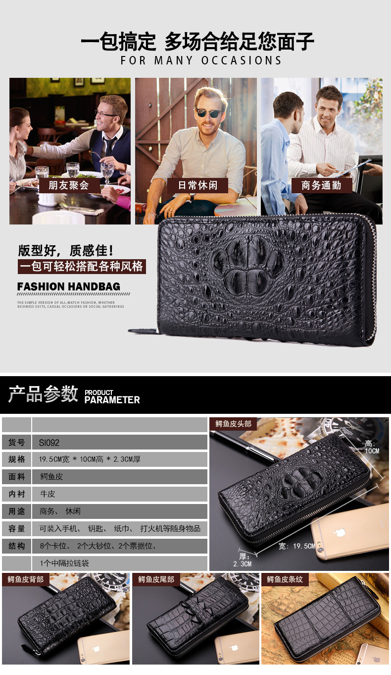 易伽达男士钱包鳄鱼皮真皮长款经典手拿包多卡位休闲拉链钱包钱夹