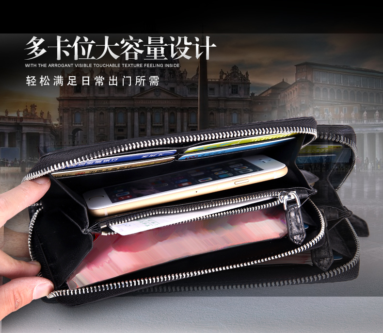 结构:8个卡位、2个大钞夹、2个票据位、1个中隔拉链袋