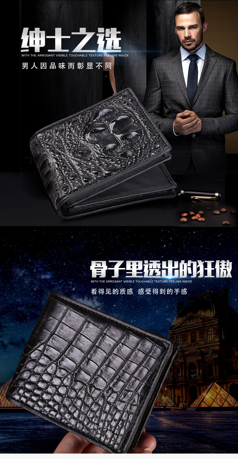 易伽达男士钱包鳄鱼皮真皮短款钱夹新款两折时尚商务多卡位钱包