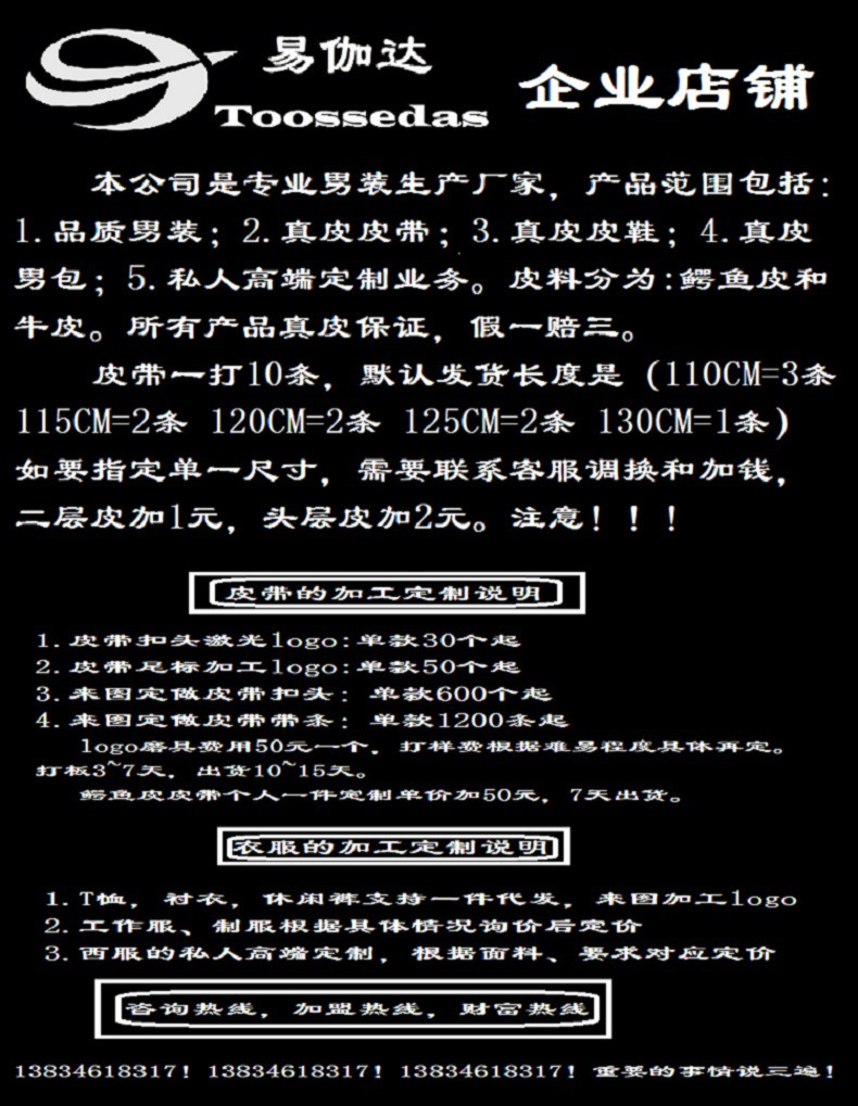 易伽达,专业的男人品牌,只做男士产品。真皮鳄鱼皮材质保障,支持验货。60天质保,终身保修。