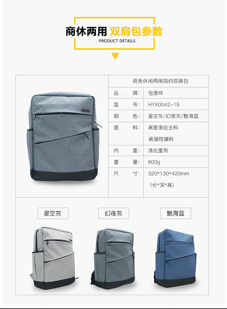 恒源祥 品牌简约多功能双肩背包