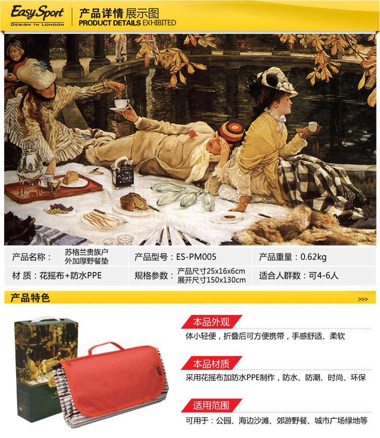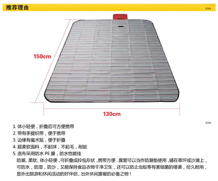 防水防潮,时尚环保,方便携带,手感柔软,适合公园、海边沙滩、郊游野餐