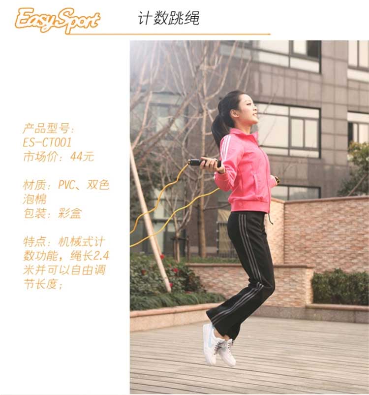 机械式计数跳绳,准确又实用,双色泡棉,手感出色,外观时尚,是最实用的随身运动小套装。
