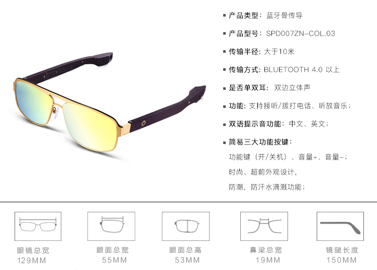 商品名称:思派德 SPIDER智能眼镜墨镜蓝牙骨传导