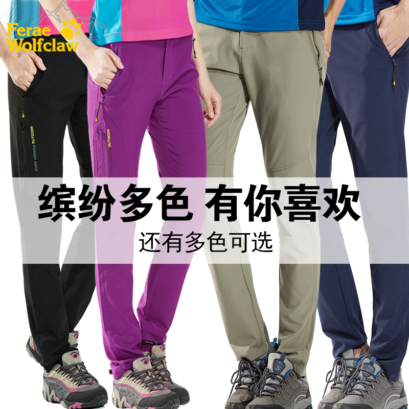 爆款弹力速干裤女户外冲锋裤定制运动透气快干登山长裤子男