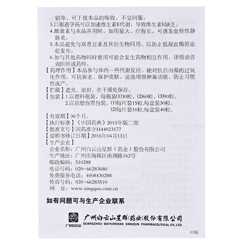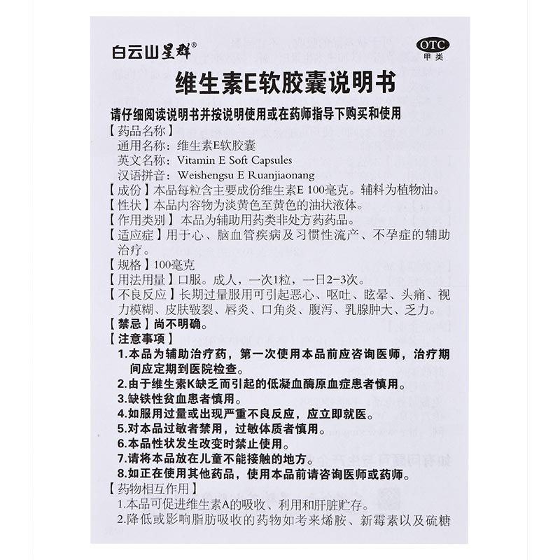请仔细阅读(白云山星群 维生素E软胶囊(滴剂) 100mg*60粒)的作用说明,并在药师指导下购买和使用。