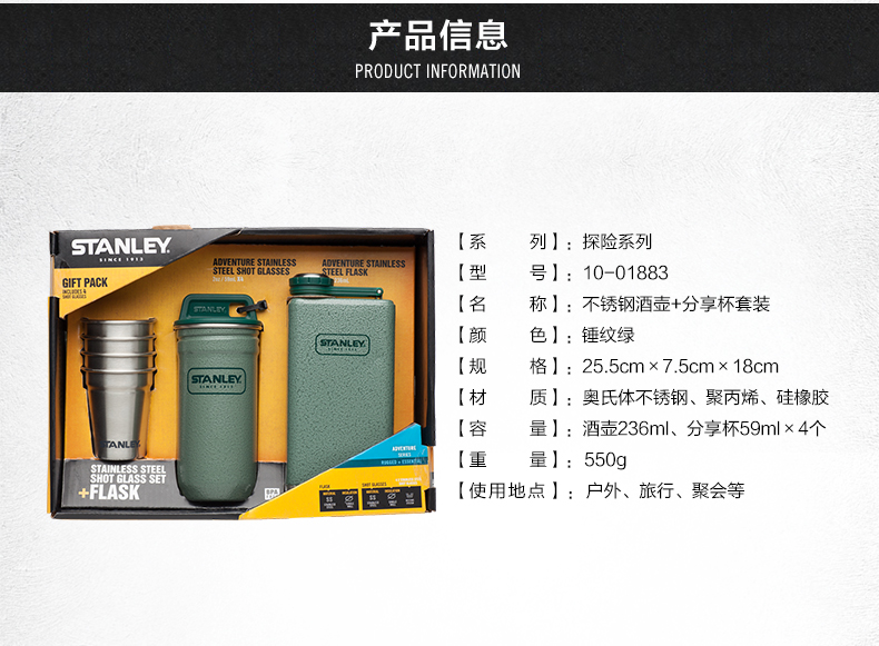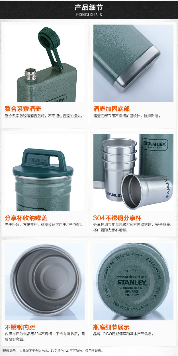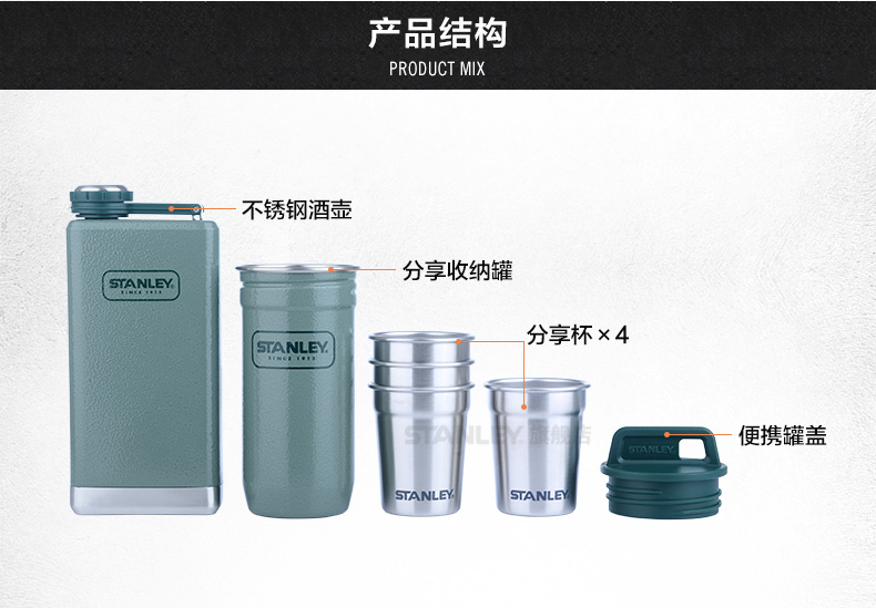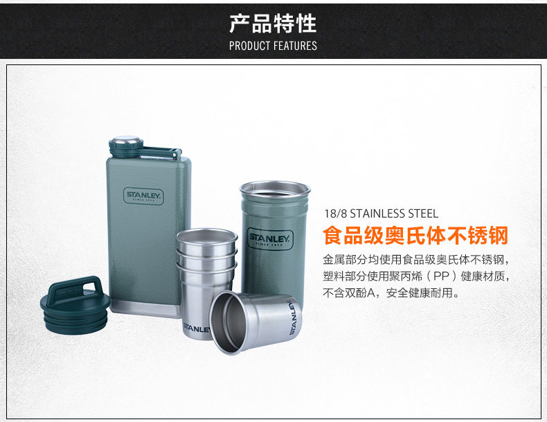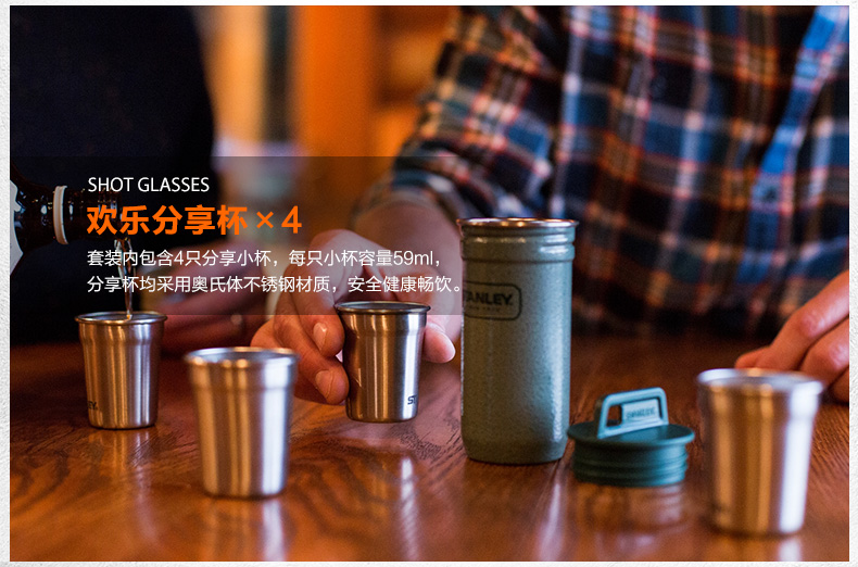 Stanley小酒壶套装酒杯户外随身白酒小酒壶不锈钢酒具套装仿古