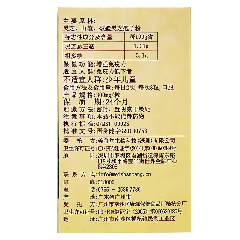 商品名称:美善堂牌 灵芝山楂灵芝孢子粉胶囊