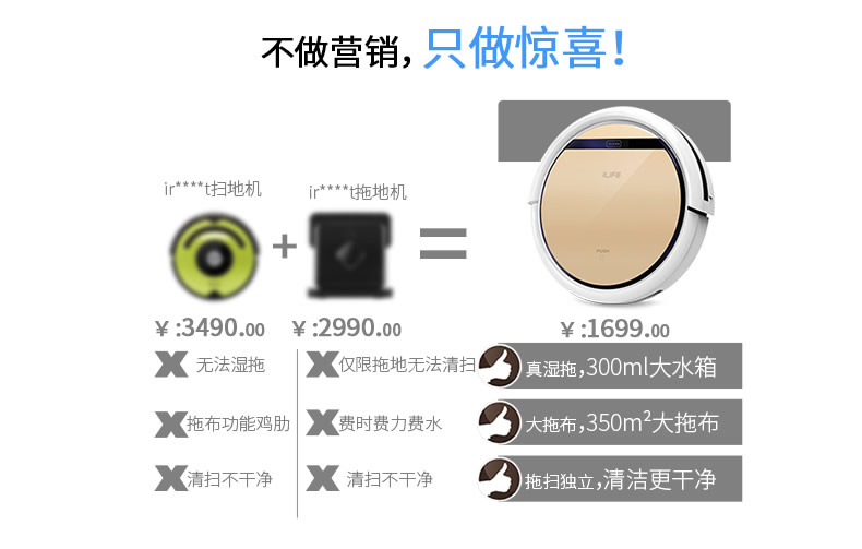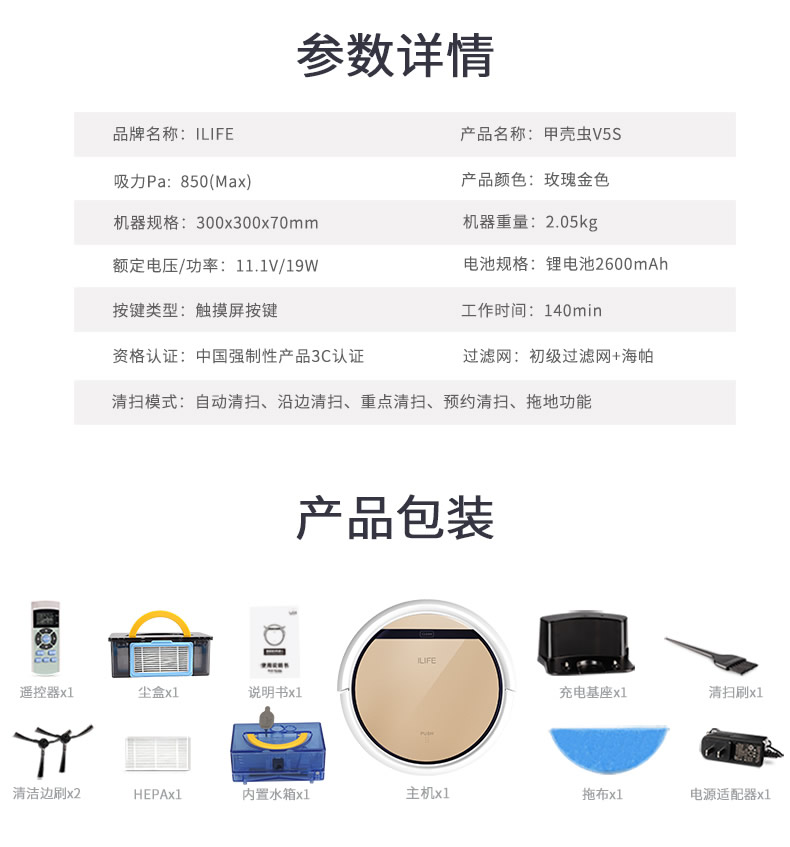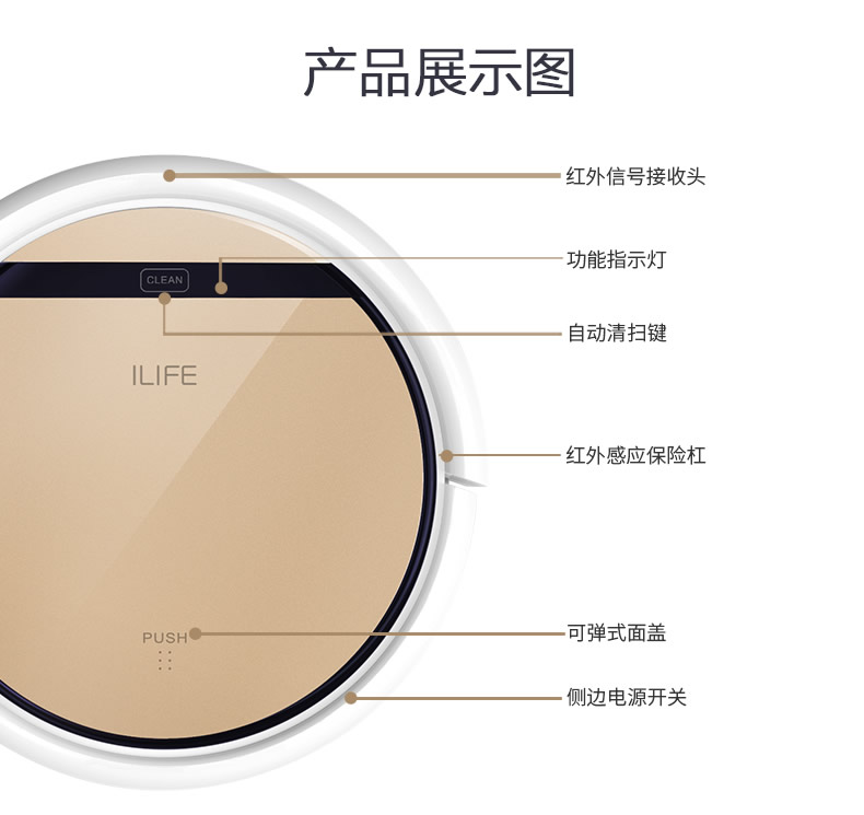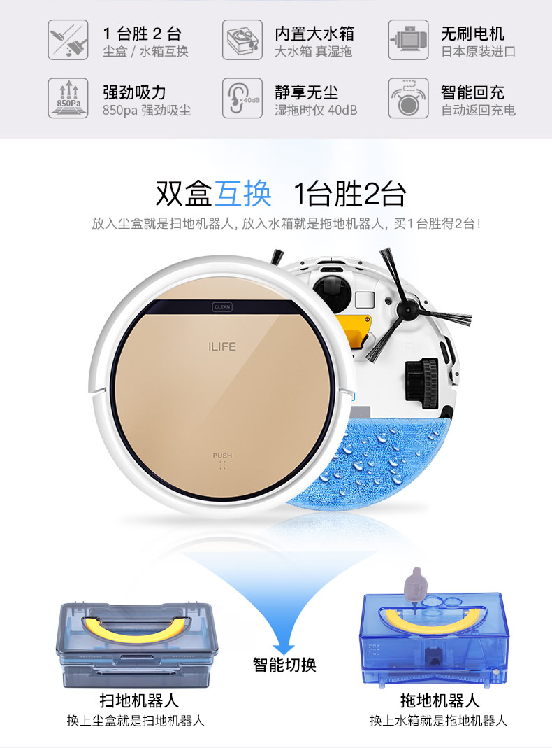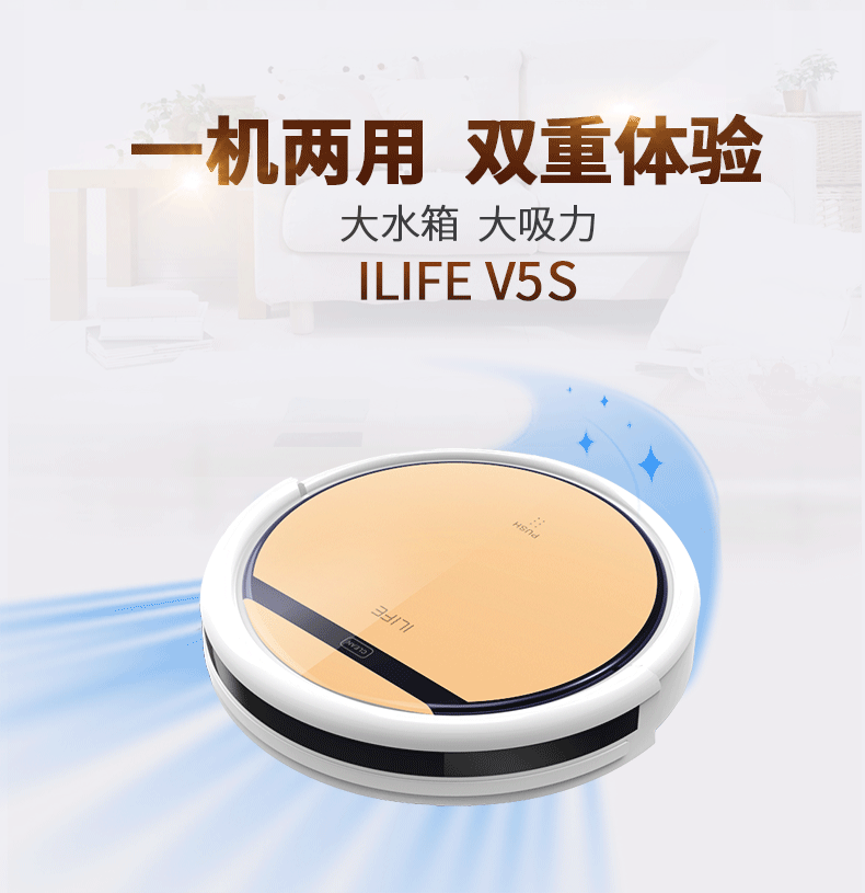 ILIFE 智意 V5S智能扫地机器人拖地机静音 吸扫干湿拖一体擦地机