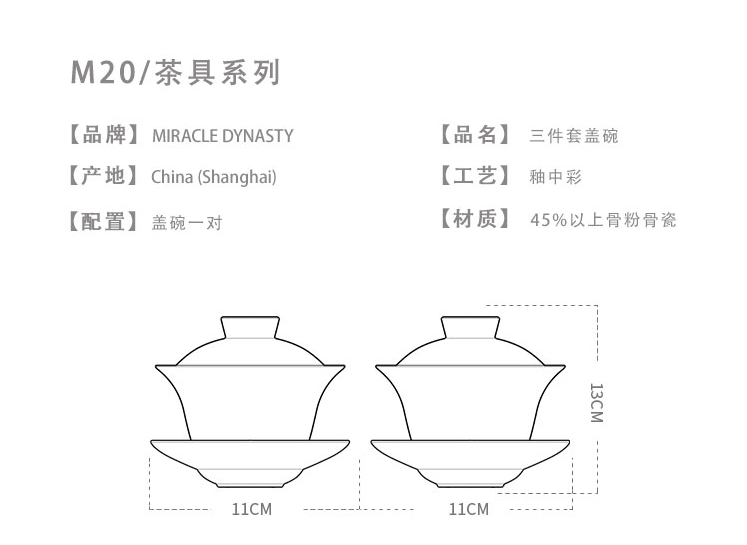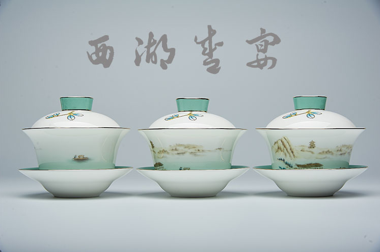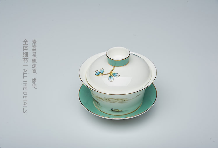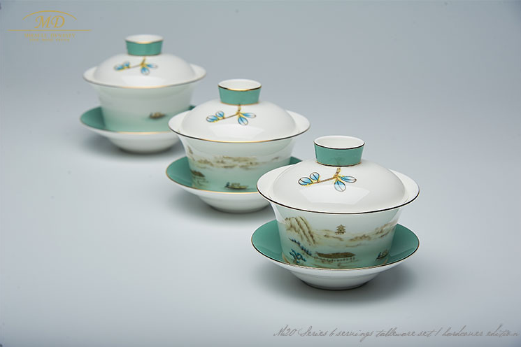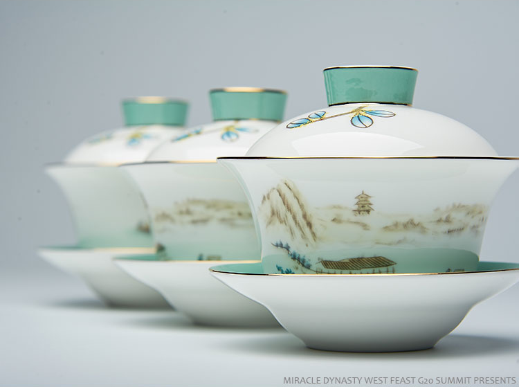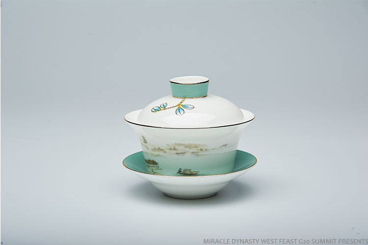 M20玛戈隆特骨瓷三件盖碗对装西湖盛宴中国风江南风情
