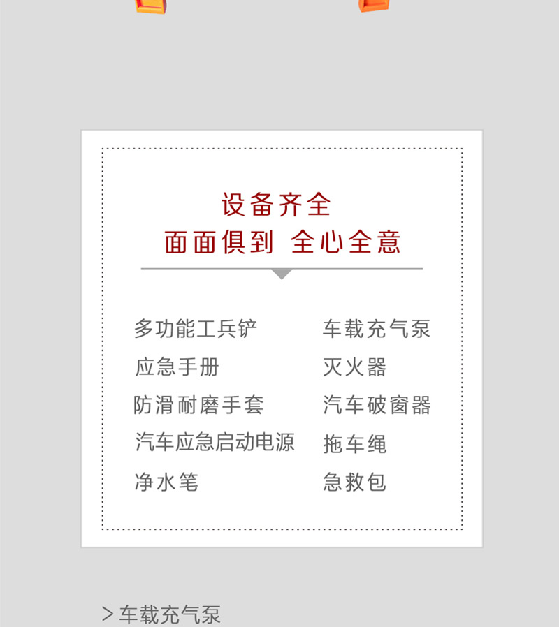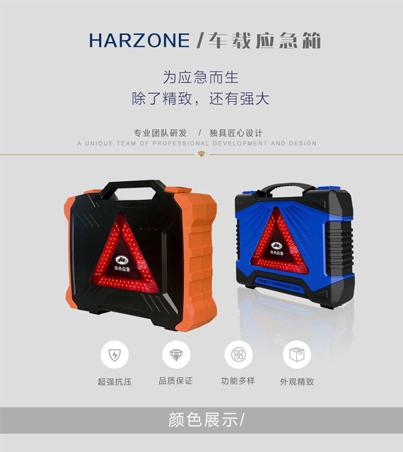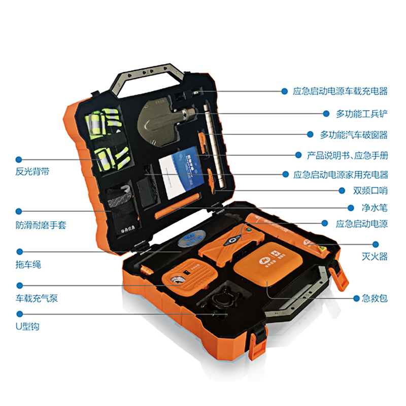 车载应急箱可用于常见交通事故的紧急救治和车辆出行时发生故障的应急维修,是一种将现场急救的医疗器械产品和实用工具合理组合在 一起的综合性应急箱。