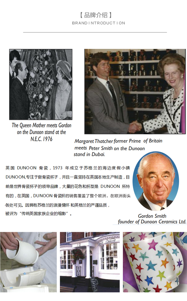 1、安全可靠的制作原料、通过英国本土测试没有有毒物质析出 2、50%骨粉含量、瓷质细腻、轻薄坚硬、洁白柔和、透光性强 3、27道工序,英国手工制作。