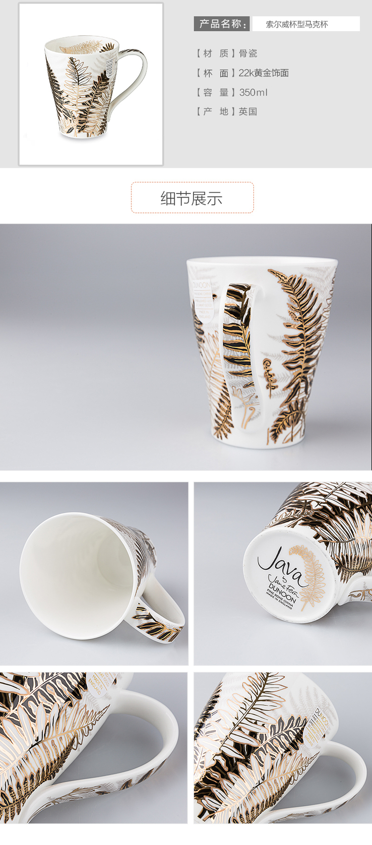 英国丹侬DUNOON骨瓷马克杯水杯索尔威杯型22K黄金饰面