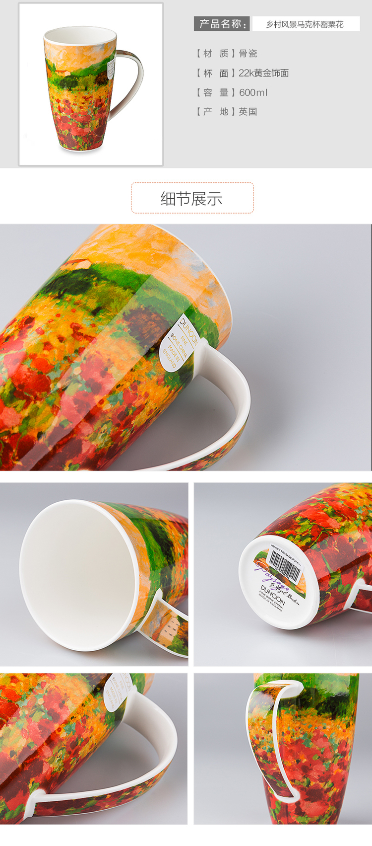 英国原产丹侬DUNOON骨瓷马克杯水杯乡村风景系列罂粟花
