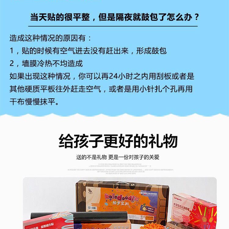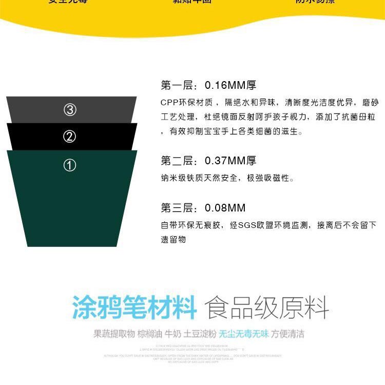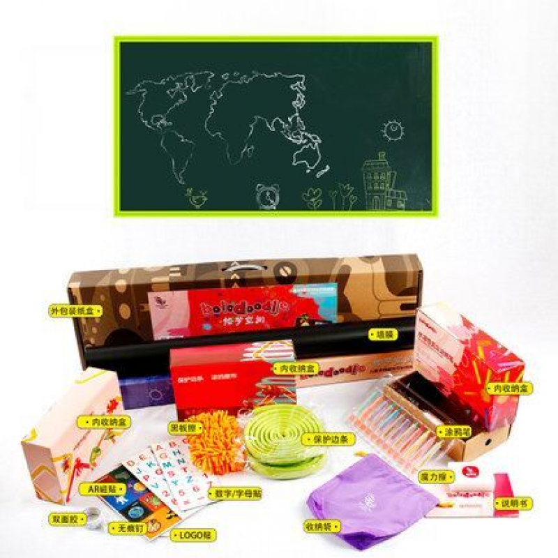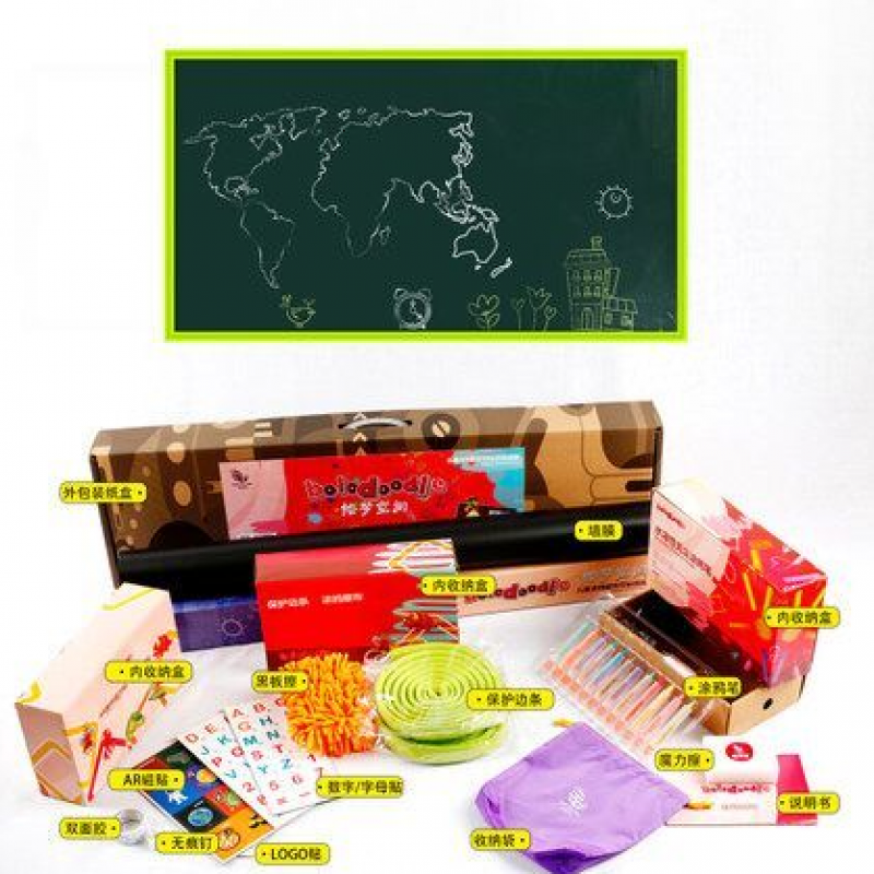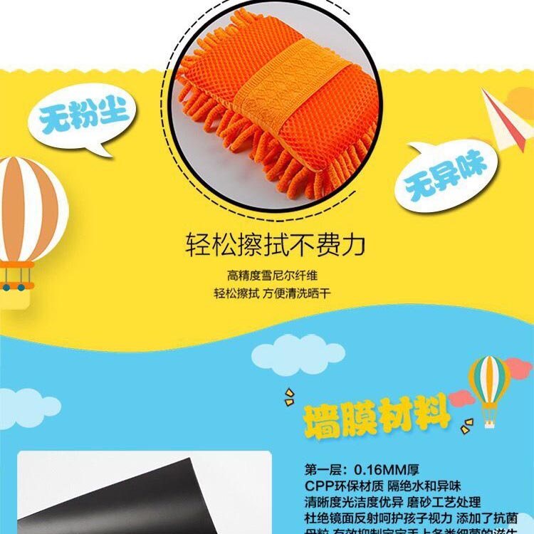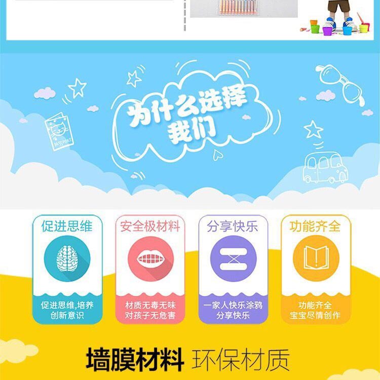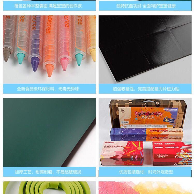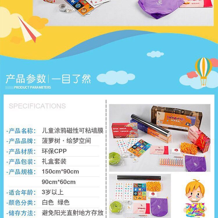 菠萝树涂鸦墙膜,进口环保塑胶,表层磨砂处理,不反光,国际标准护眼绿色,多种尺寸供选择。可用10年,不脱落,不翘边。含13色食品级可擦洗涂鸦笔礼盒装,无挥发,无异味,无粉尘,同时配防撞装饰边条;高级雪妮绒抹布等; 打造宝宝专属的涂鸦学习空间!