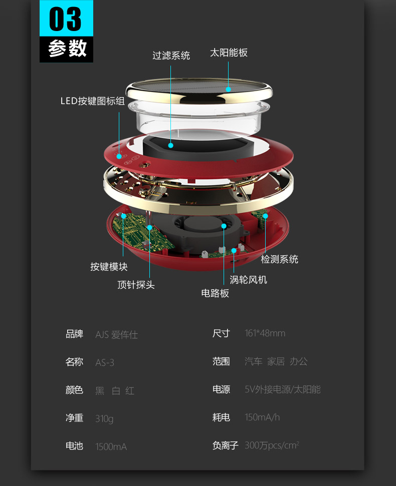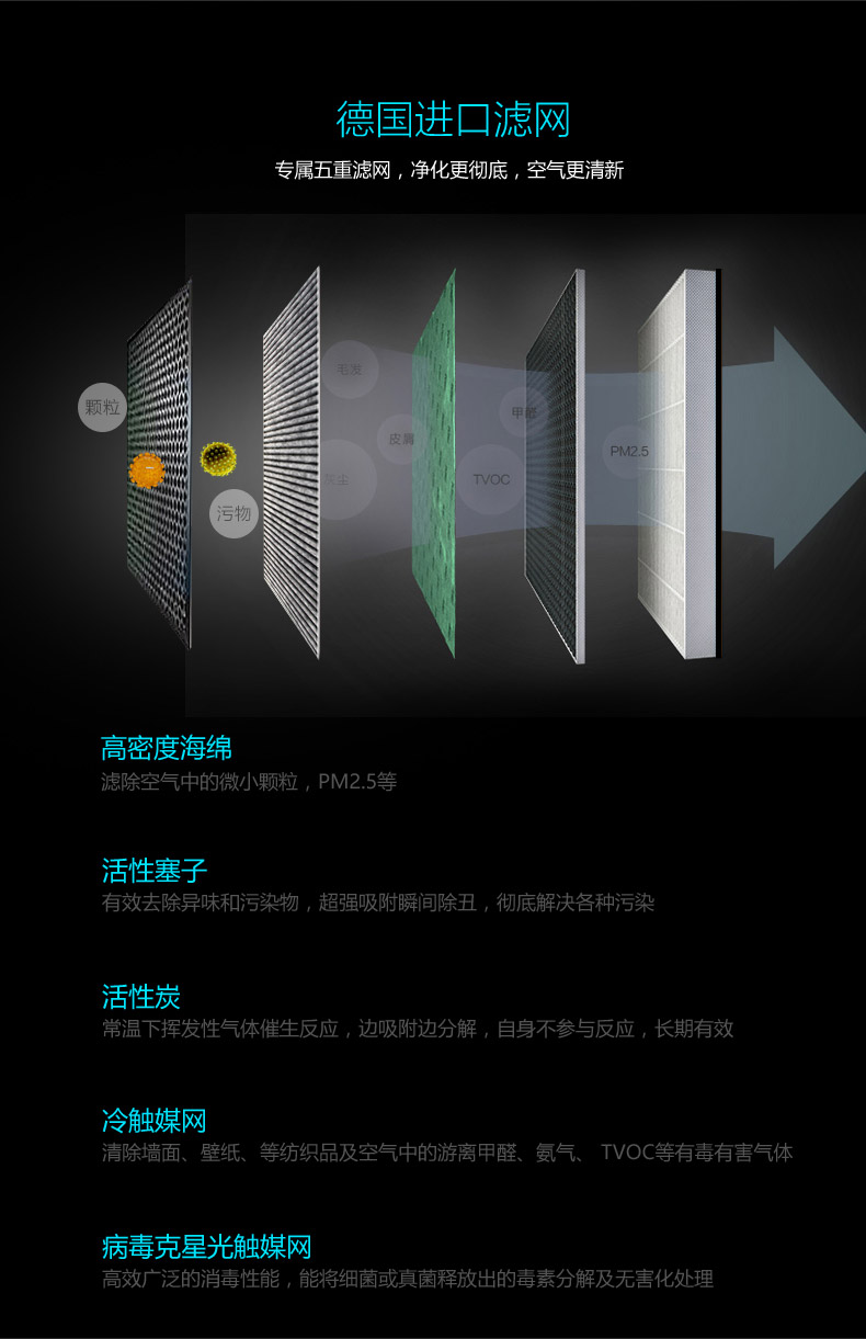 5、活性炭滤网、冷触酶、HEPA滤网,除尘/除臭/去烟味的作用。