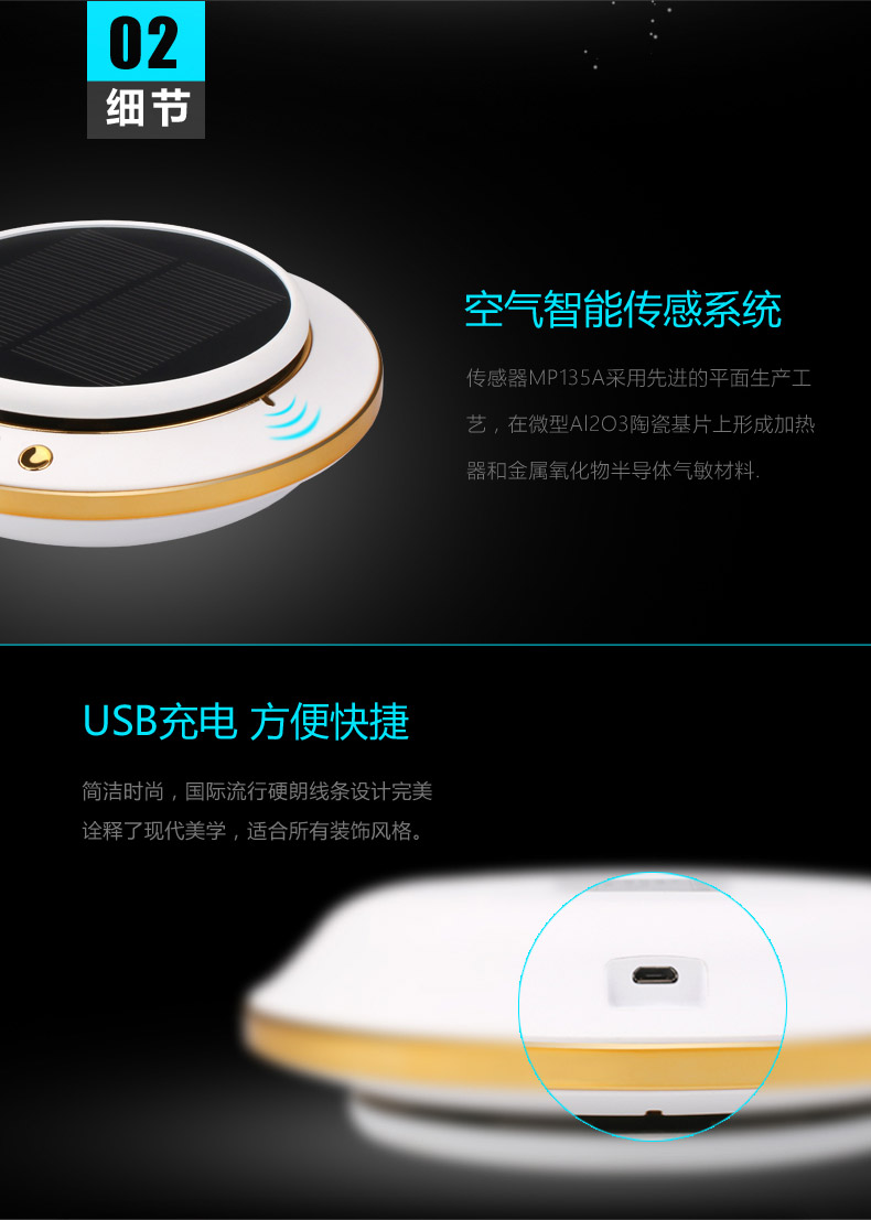 7、负离子发生器释放高浓度负离子,负离子具有很强的还原性,对空气中的尘埃有很好的聚沉和吸附作用,有效去除PM2.5,还能将空气中的甲醛分解为水和二氧化碳。