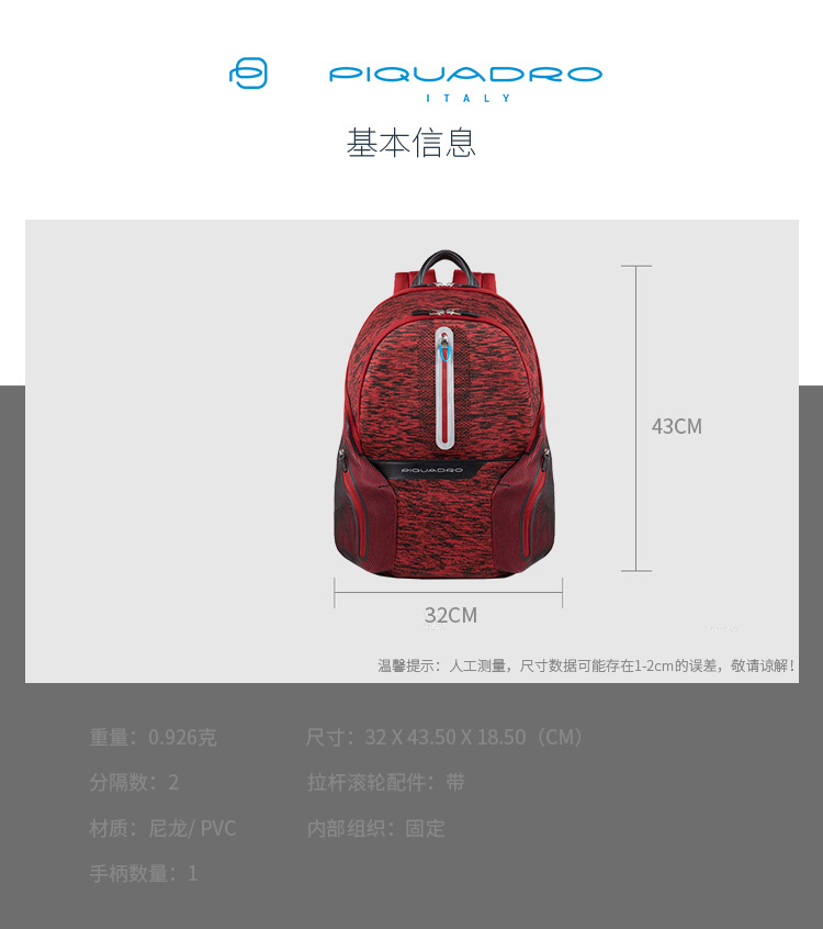 PIQUADRO皮切诺双肩包商务休闲多功能笔记本电脑 14英寸背包